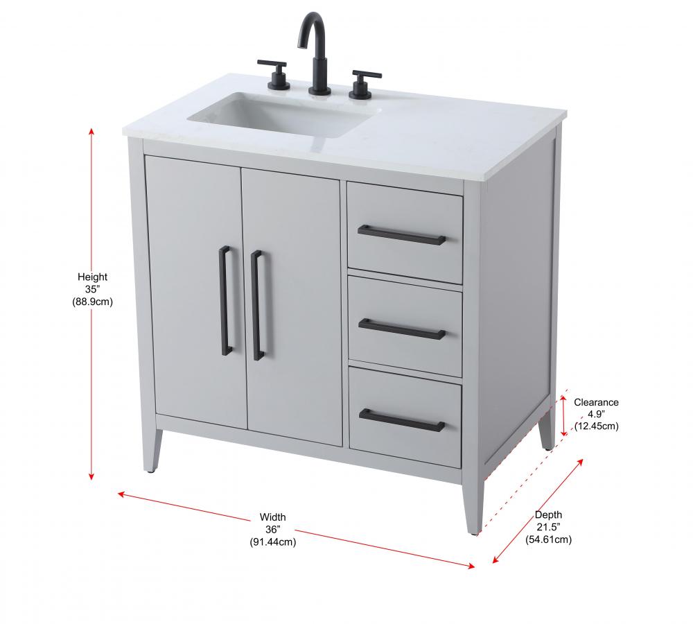 Vanity Cabinet 2Dr 3Dw 36x21.5x35 Grey