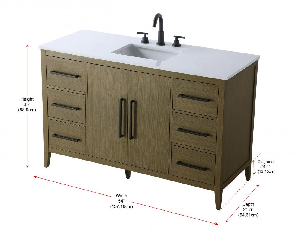 Vanity Cabinet 2Dr 6Dw 54x21.5x35 Chestnut Brown
