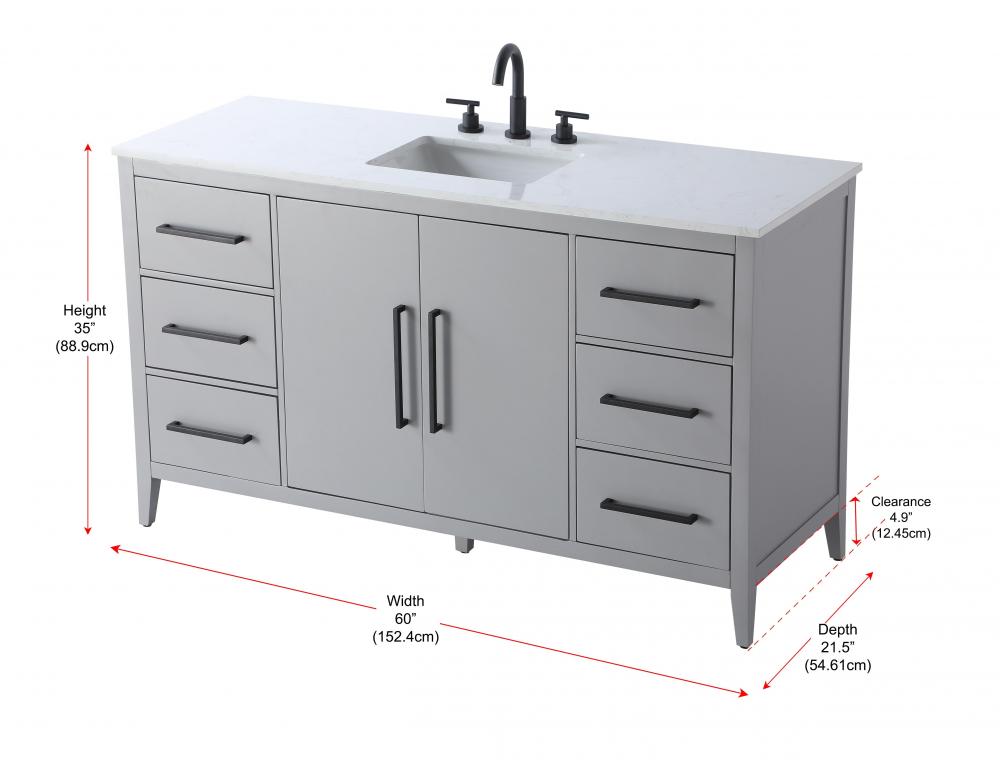 Vanity Cabinet 2Dr 6Dw 60x21.5x35 Grey