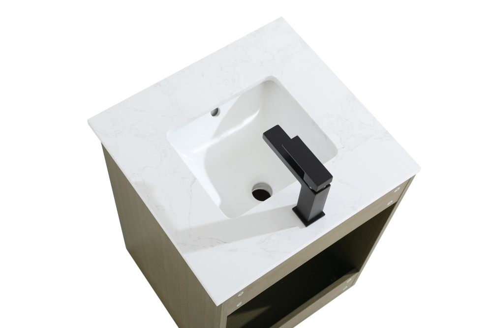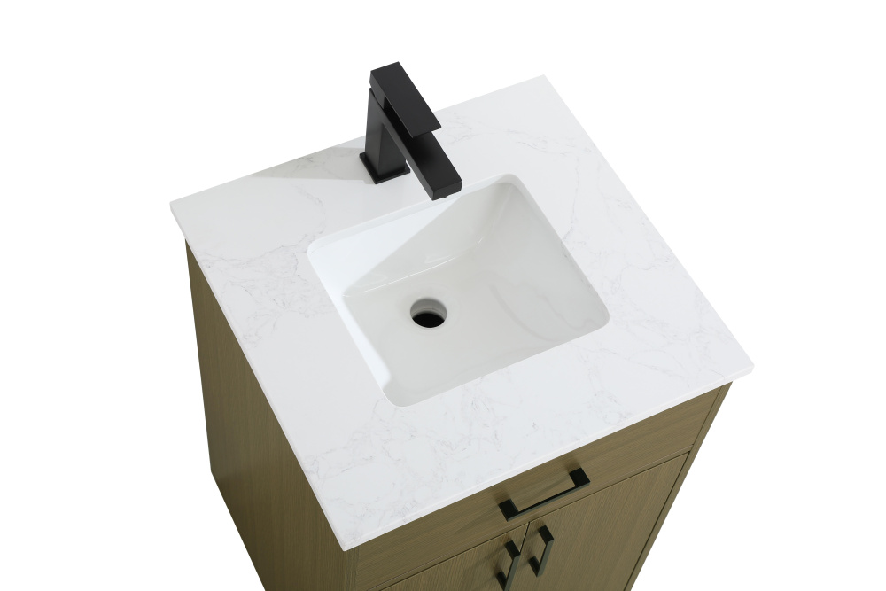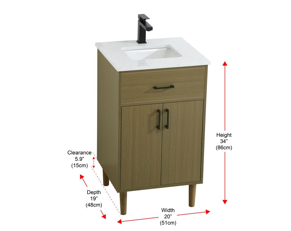 Transform your bathroom with this mid-century modern vanity, designed to bring both functionality and a sense of style to your space. Its clean lines, minimalist design, and tapered solid wood legs evoke a timeless charm, perfect for blending with modern and transitional interiors. The engineered marble countertop, with its unique faux marble veining, adds a refined, luxurious touch, while the porcelain sink is both durable and easy to maintain. Practicality meets aesthetics with a faux drawer for balanced design and a spacious double-door cabinet for efficient storage. Constructed from solid wood and MDF, this vanity offers lasting durability, while adjustable foot levelers ensure stability on any floor. Shipped mostly assembled, the solid wood legs can be effortlessly twisted into place, making installation quick and hassle-free.
