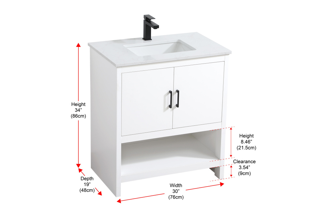 Vanity Cabinet 2Dr W30"x D19"x H34" WH