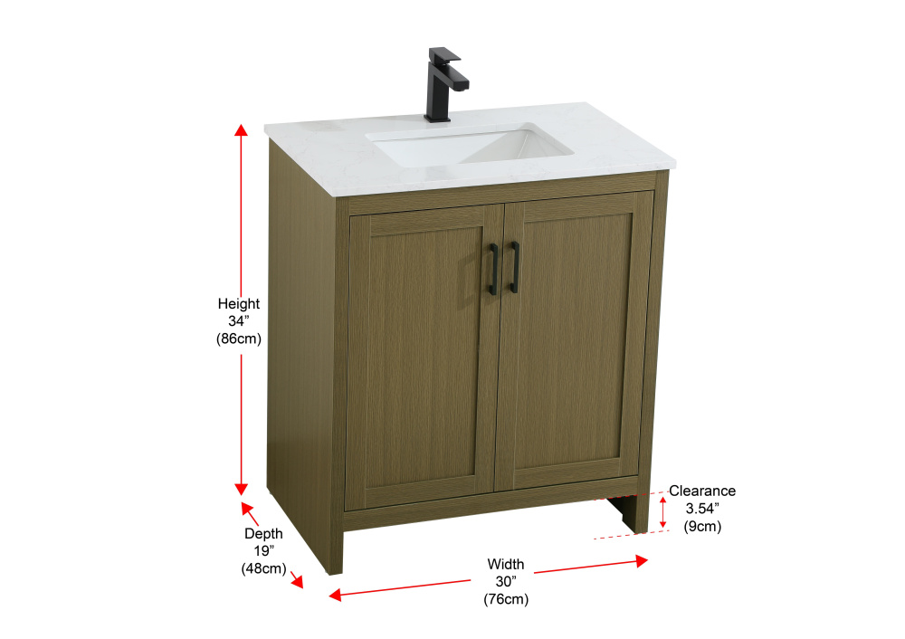 Vanity Cabinet 2Dr W30''xD19''xH34" Chestnut Brown
