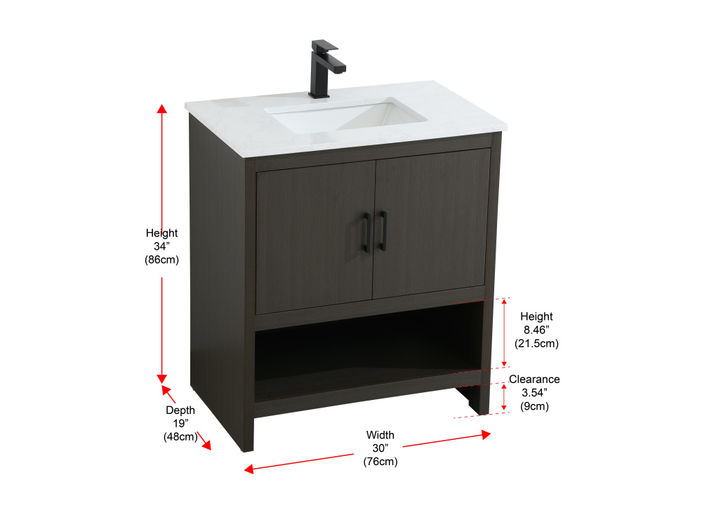 Vanity Cabinet 2Dr W30''xD19''xH34" Mocha Brown