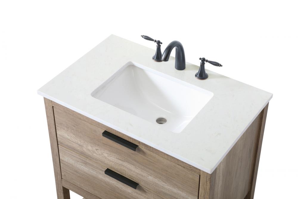 Featuring an open shelf at the bottom for extra storage, the vanity provides a convenient space to showcase decor or store essentials, adding functionality and style to your bathroom.