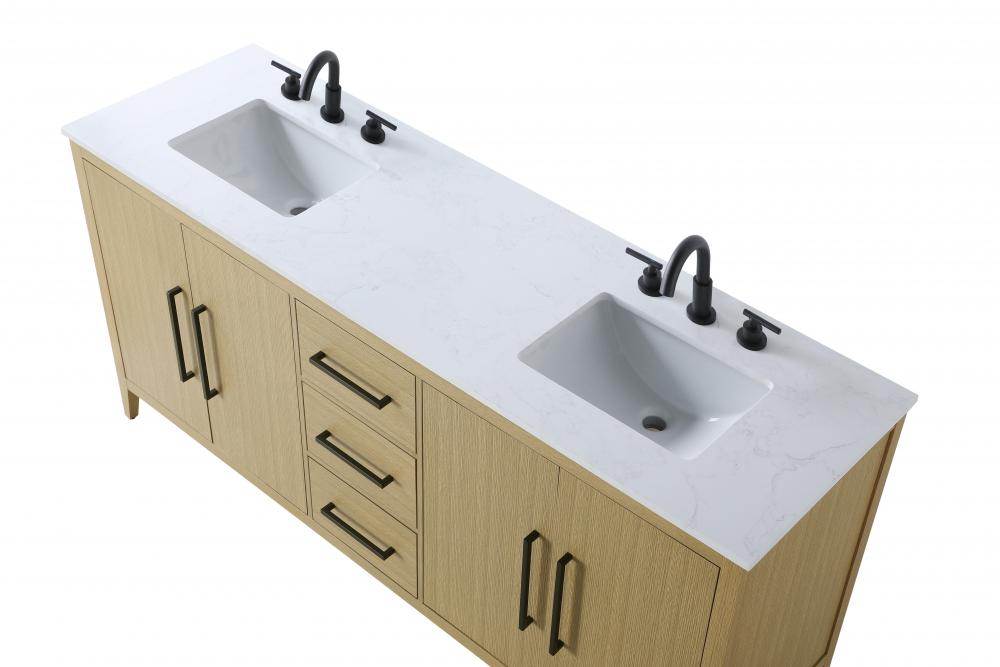 Topped with a white engineered marble countertop featuring elegant veining, this vanity adds a luxurious yet durable surface that’s easy to maintain.