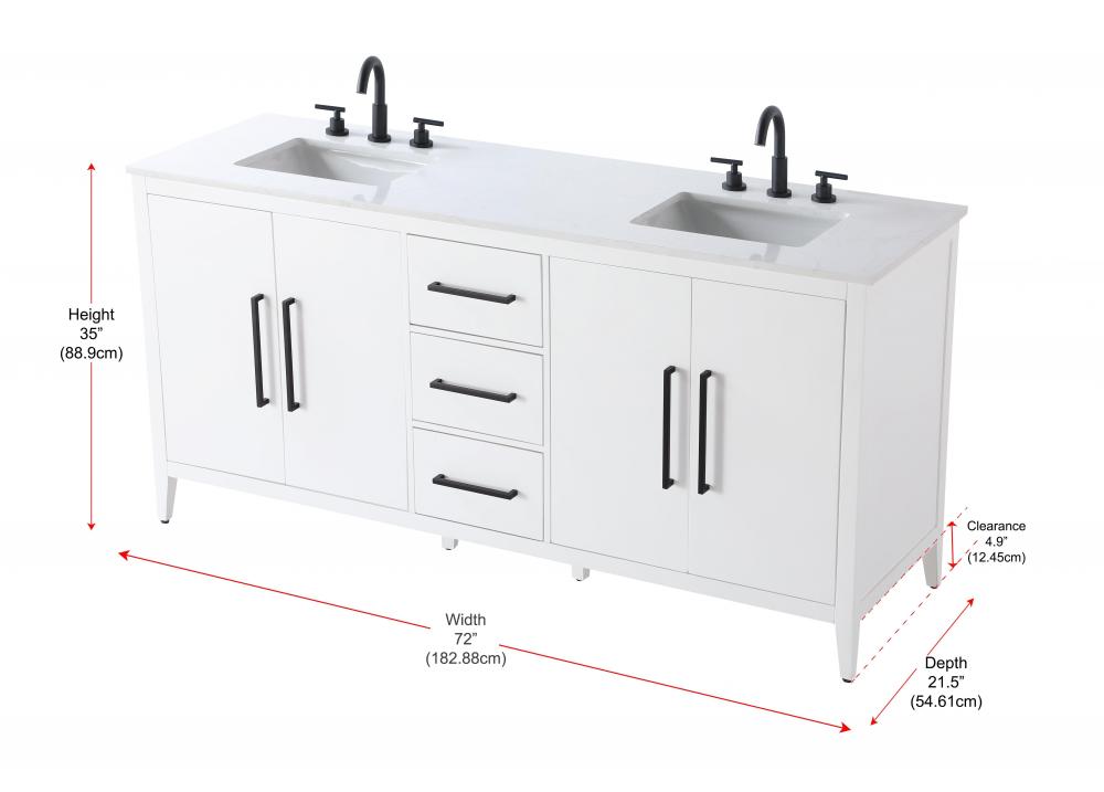 Vanity Cabinet 4Dr 3Dw 72x21.5x35 White