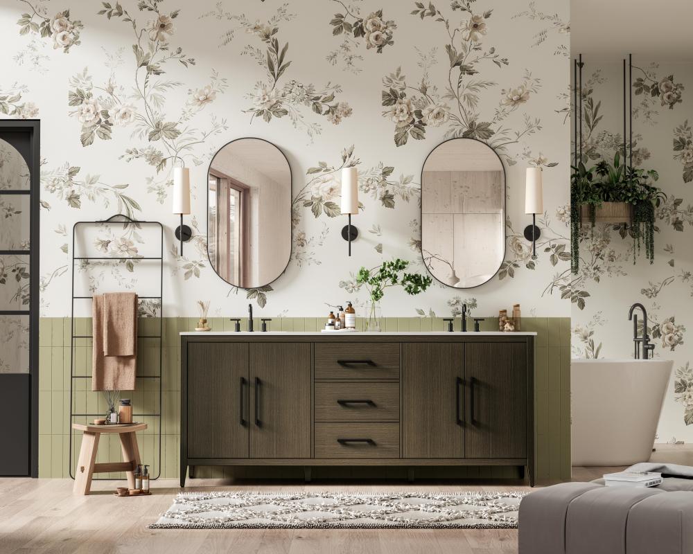 The minimalist flat door panels create a sleek, modern appearance, perfect for blending into transitional and contemporary bathroom designs.