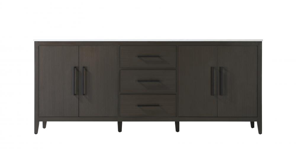 The flat-panel soft-closing drawers feature thin black barpulls, offering a smooth and quiet operation, adding a luxurious touch to everyday use.