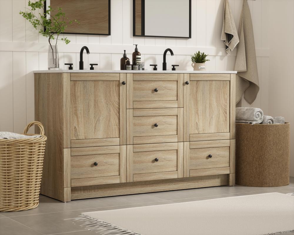 Experience the epitome of convenience with a freestanding vanity featuring an open back panel, making plumbing installation a breeze.