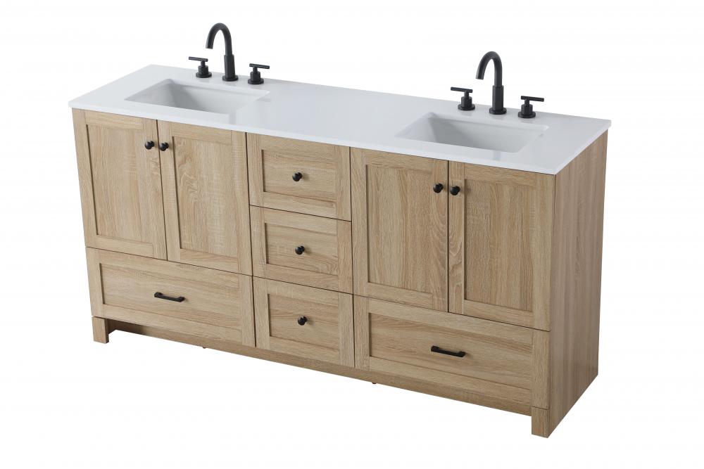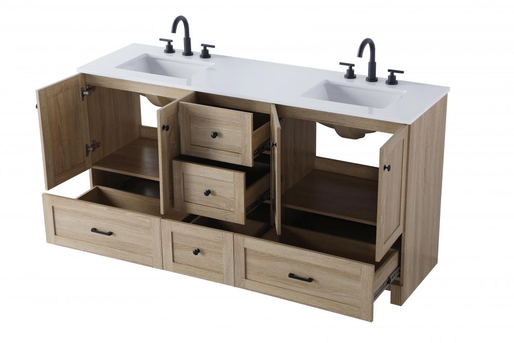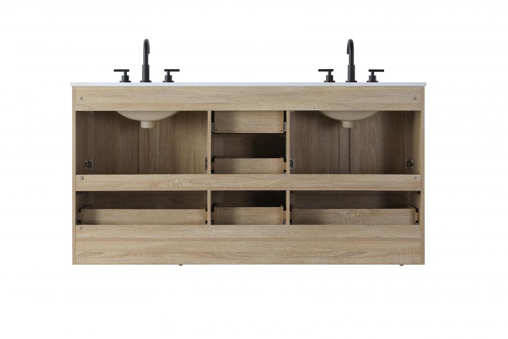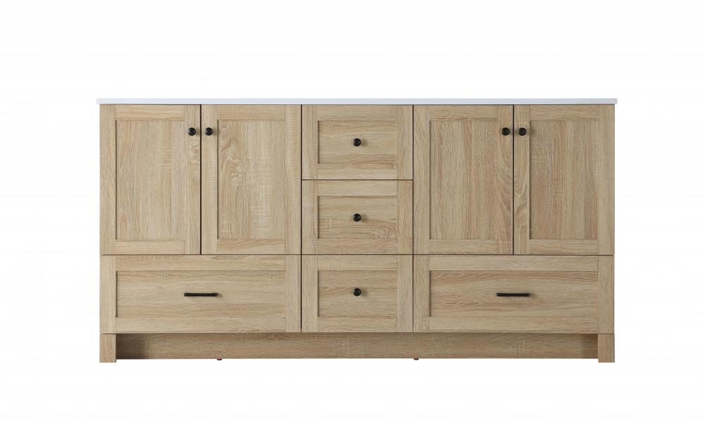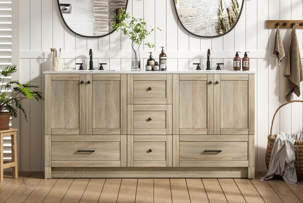 Revel in the beauty of a vanity that mimics the charm of real wood without the maintenance, boasting a faux wood look that adds a touch of natural warmth and rustic sophistication to your bathroom.