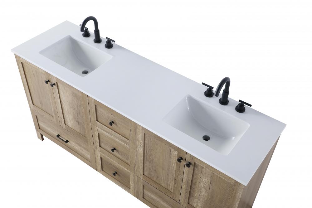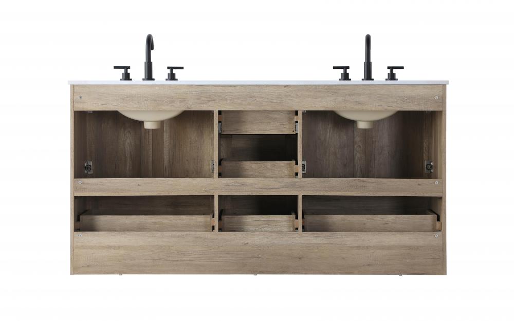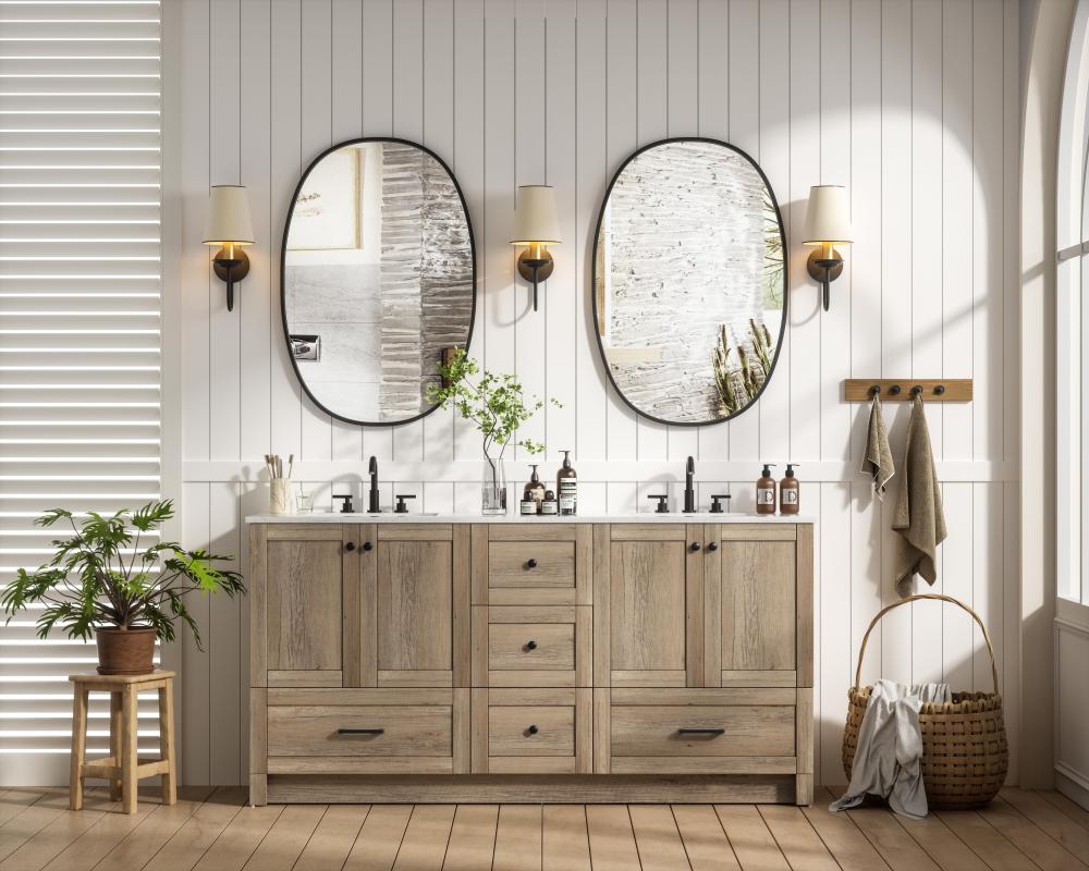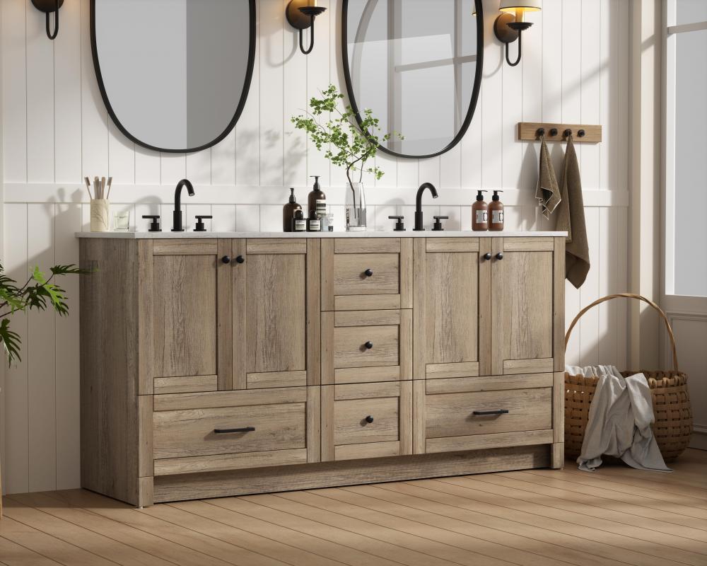 Revel in the beauty of a vanity that mimics the charm of real wood without the maintenance, boasting a faux wood look that adds a touch of natural warmth and rustic sophistication to your bathroom.