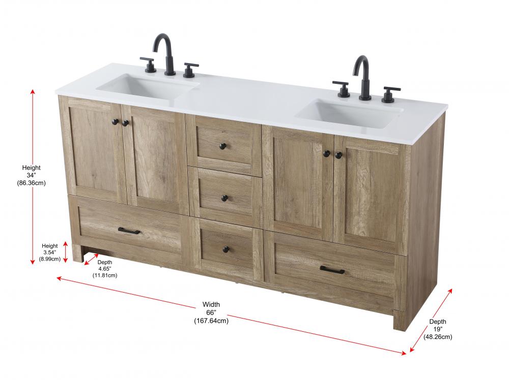 Vanity Cabinet 5Dw 4Dr 66"x19"x34" Natural Oak