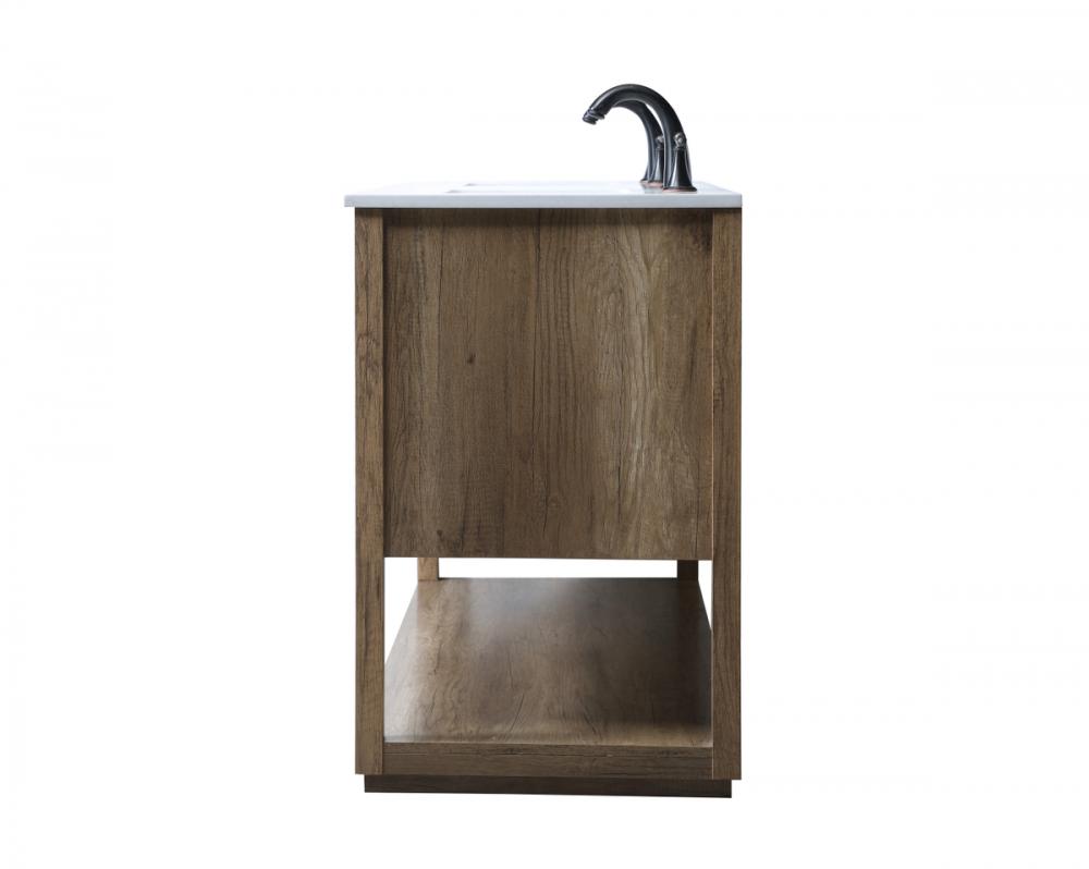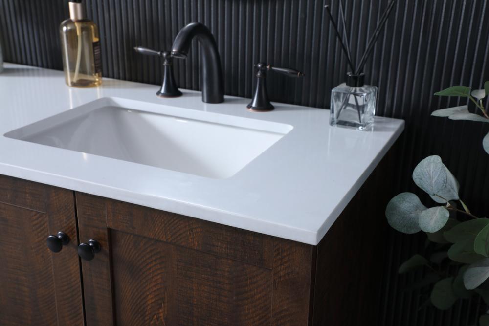 Revel in the beauty of a vanity that mimics the charm of real wood without the maintenance, boasting a faux wood look that adds a touch of natural warmth and rustic sophistication to your bathroom.