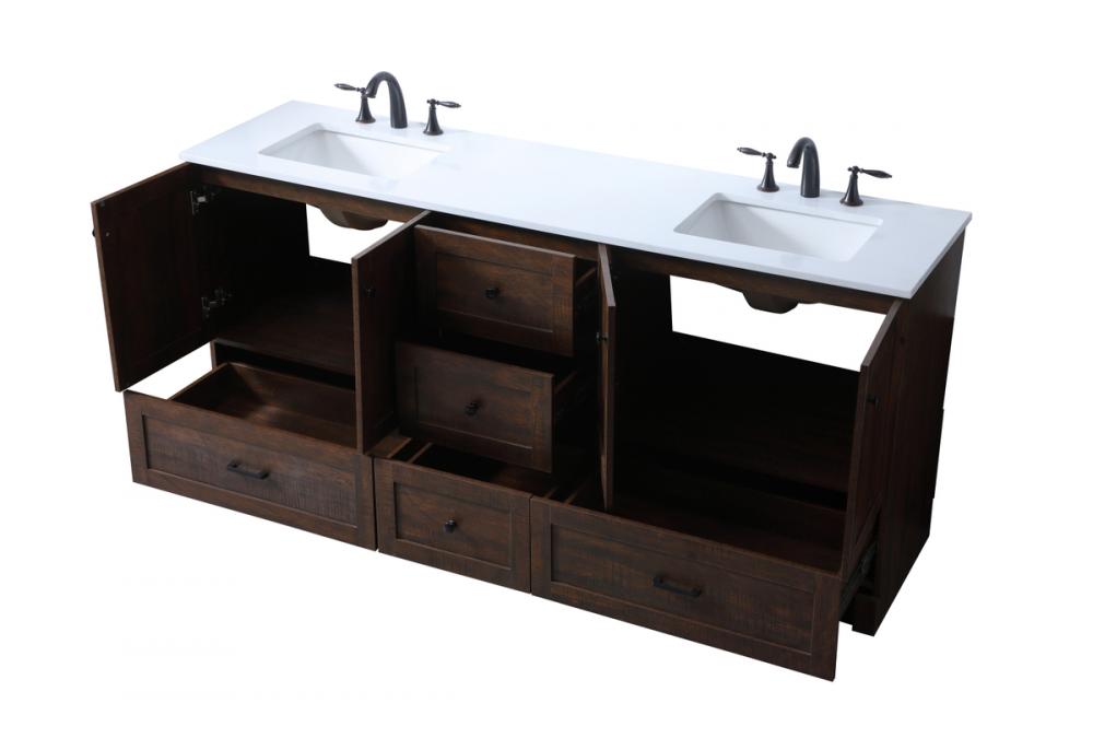 Indulge in the details with high-quality knobs and pulls adorning the drawers and doors, adding a touch of sophistication and functionality to your vanity.