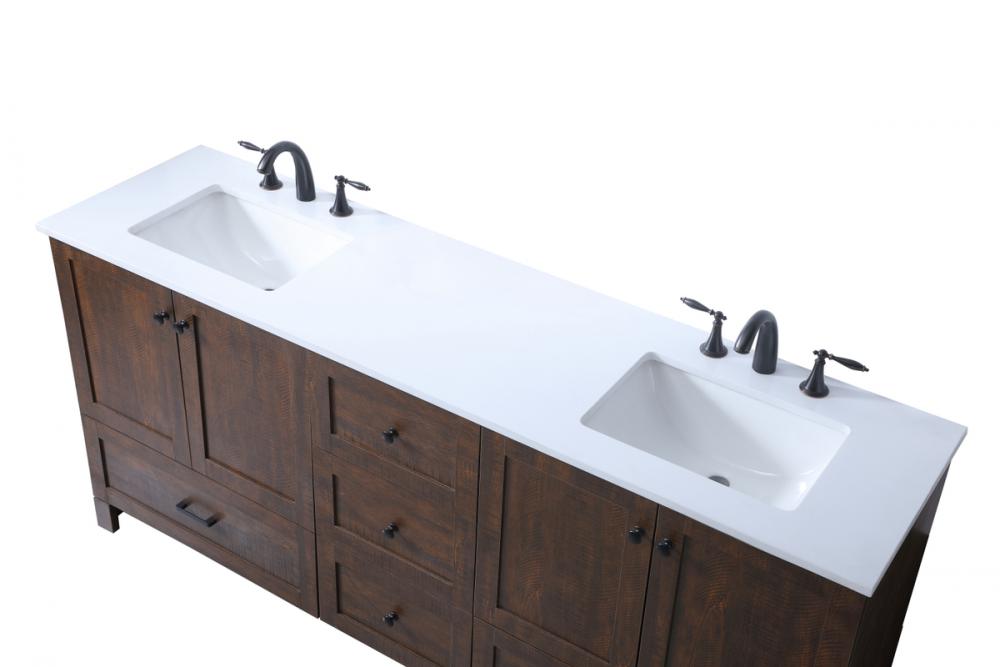 Transform your bathroom into a haven of sophistication with our double vanity, featuring an engineered marble top in a classic ivory white hue and a sleek straight-edge cut. Enjoy a seamless look with undermount porcelain sinks, as the fully assembled unit ensures hassle-free installation. Enhanced organization comes with five drawers and a spacious cabinet, all equipped with smooth soft-close glides and hinges. Elevate your space with the sleek aesthetic of black hardware, creating a perfect blend of style and functionality. Redefine your bathroom experience with this exquisite double vanity.