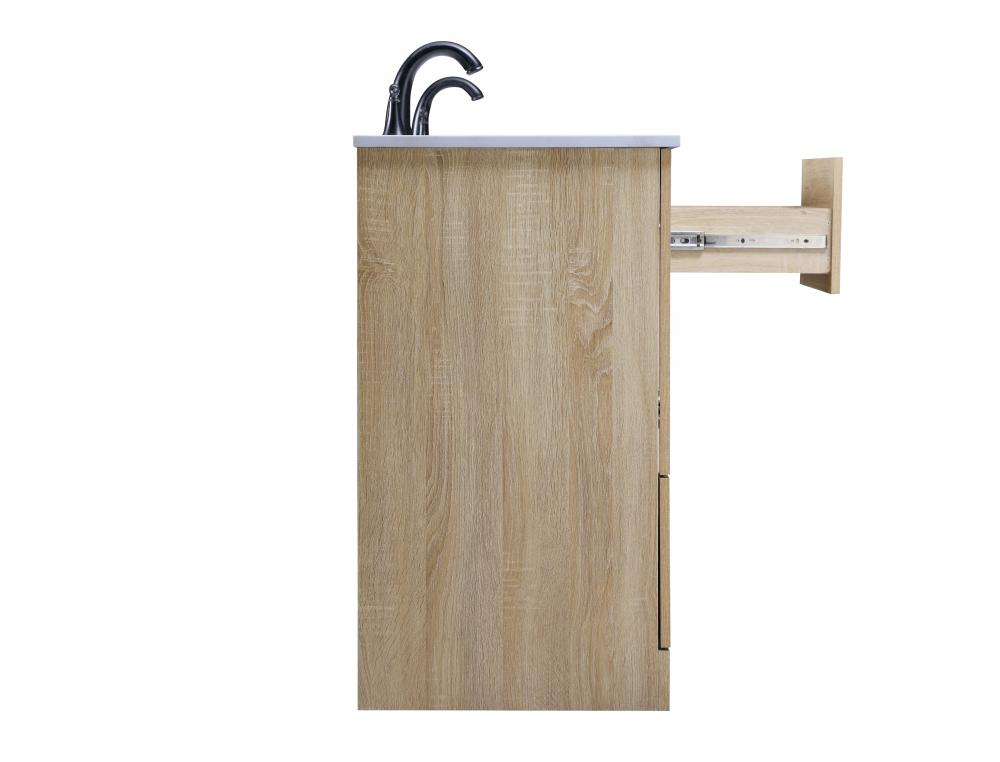 Revel in the beauty of a vanity that mimics the charm of real wood without the maintenance, boasting a faux wood look that adds a touch of natural warmth and rustic sophistication to your bathroom.