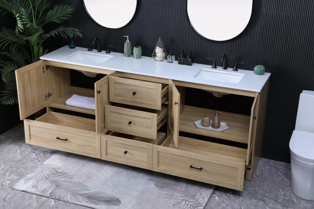 Indulge in the details with high-quality knobs and pulls adorning the drawers and doors, adding a touch of sophistication and functionality to your vanity.