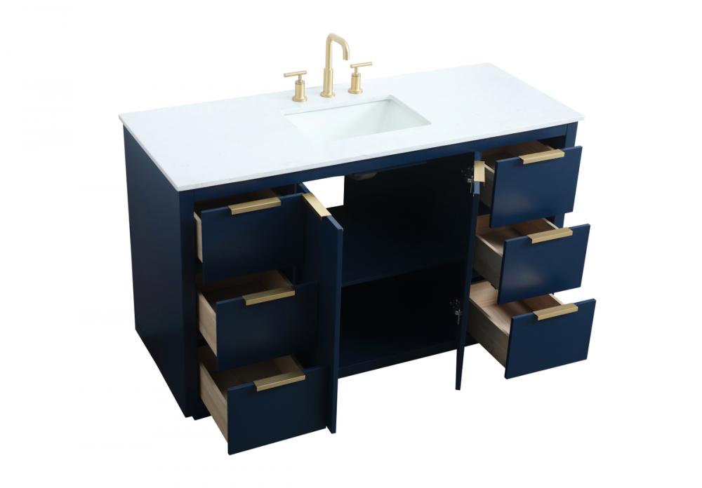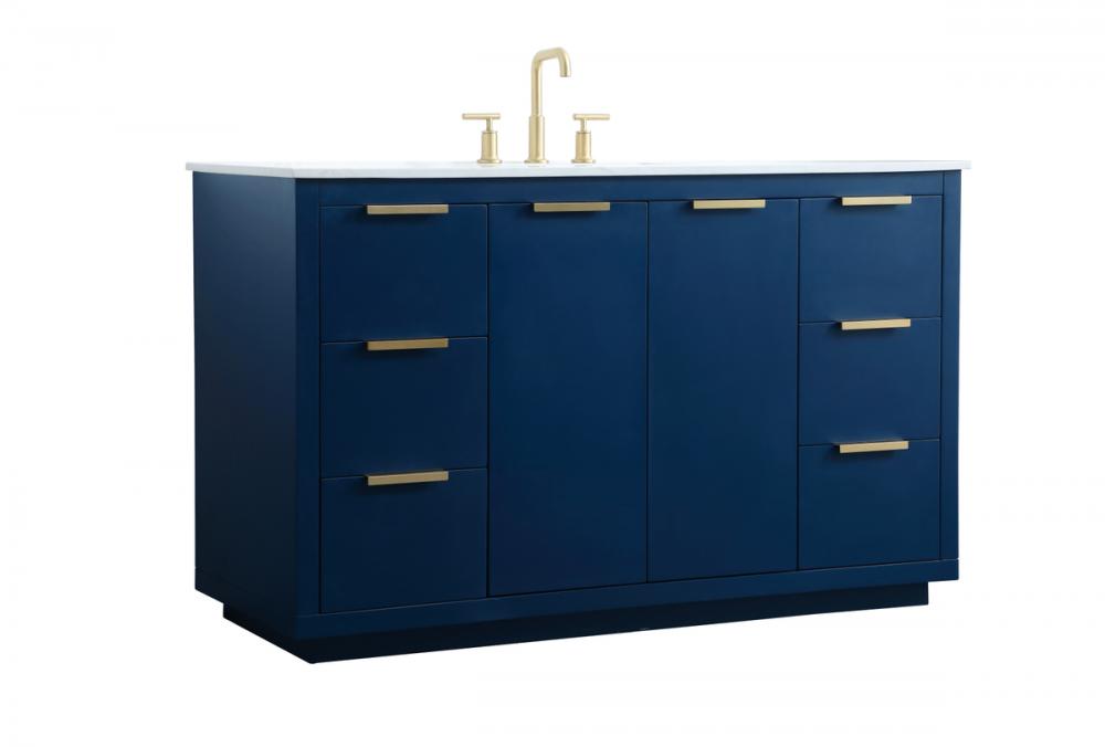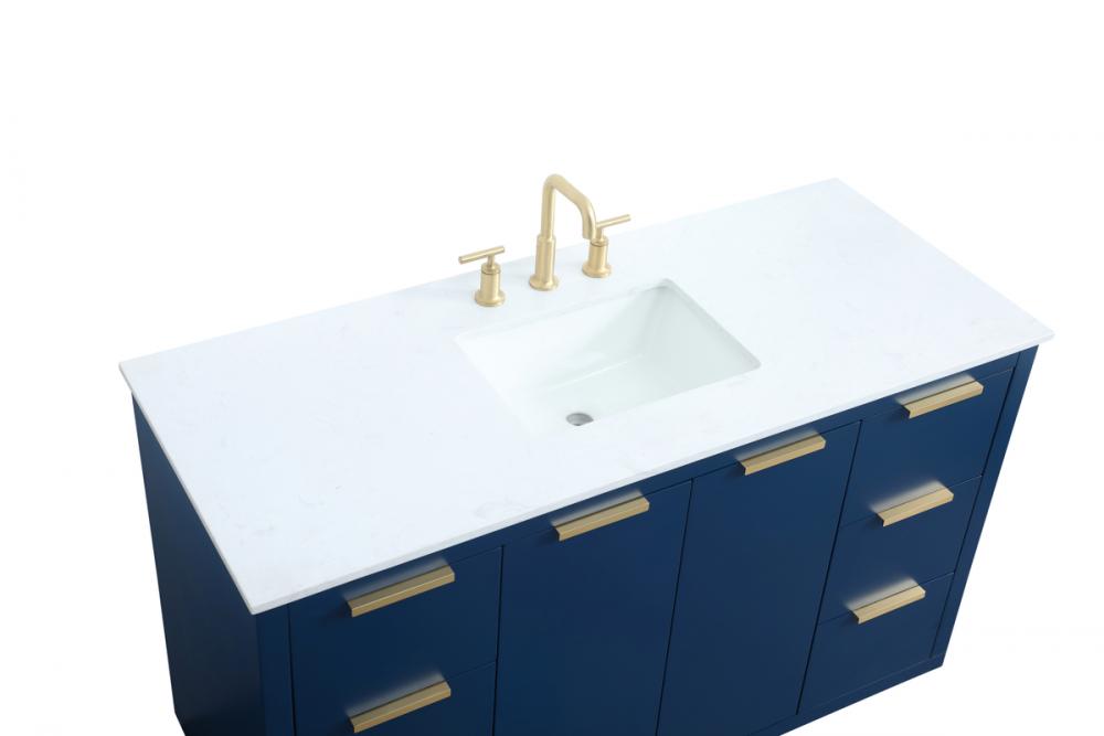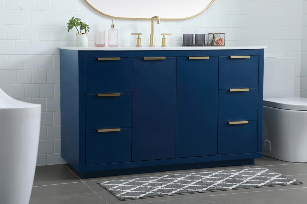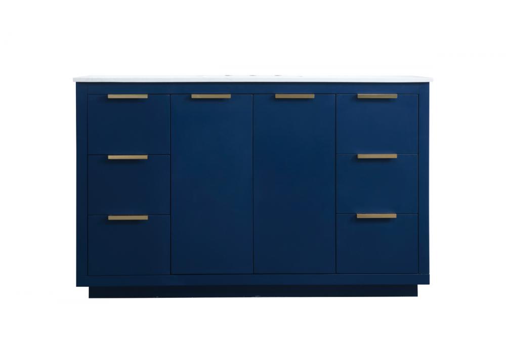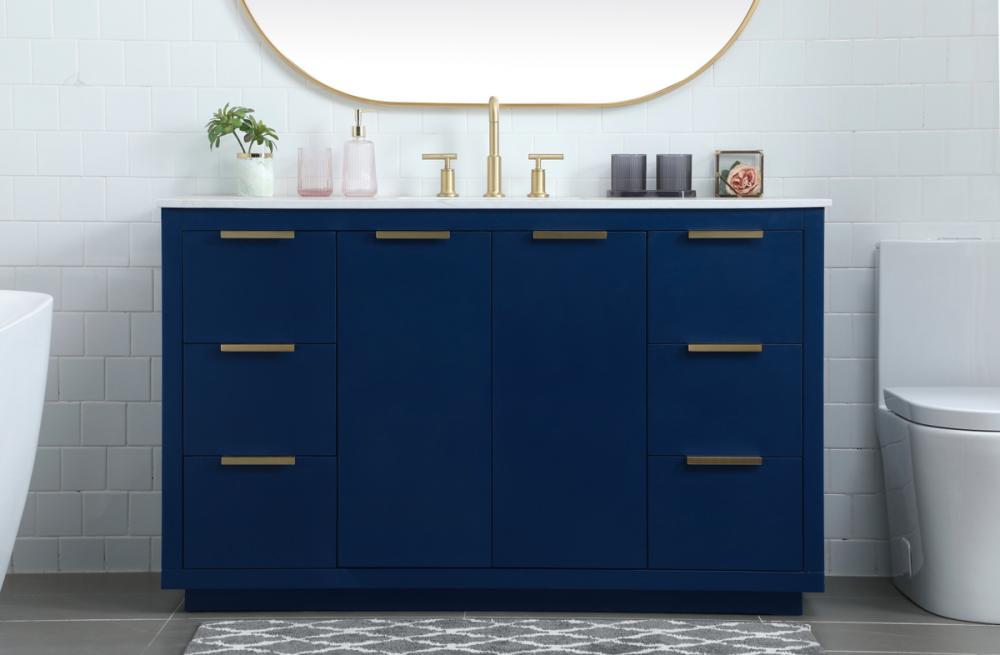Upgrade your bathroom effortlessly with our stylish 54-inch vanity, showcasing an engineered marble top with a chic straight edge cut. The combination of six functional soft-close drawer and a convenient cabinet offers a perfect balance of design elegance and versatile storage. With an undermount porcelain sink, this vanity seamlessly blends timeless elegance with practical functionality. Adorned with sleek pulls, it adds a modern touch, enhancing the overall aesthetic. With three pre-drilled holes, it allows you to personalize your bathroom by choosing the perfect widespread faucet. Redefine your bathroom experience with this compact yet impactful vanity that optimizes space without compromising style.