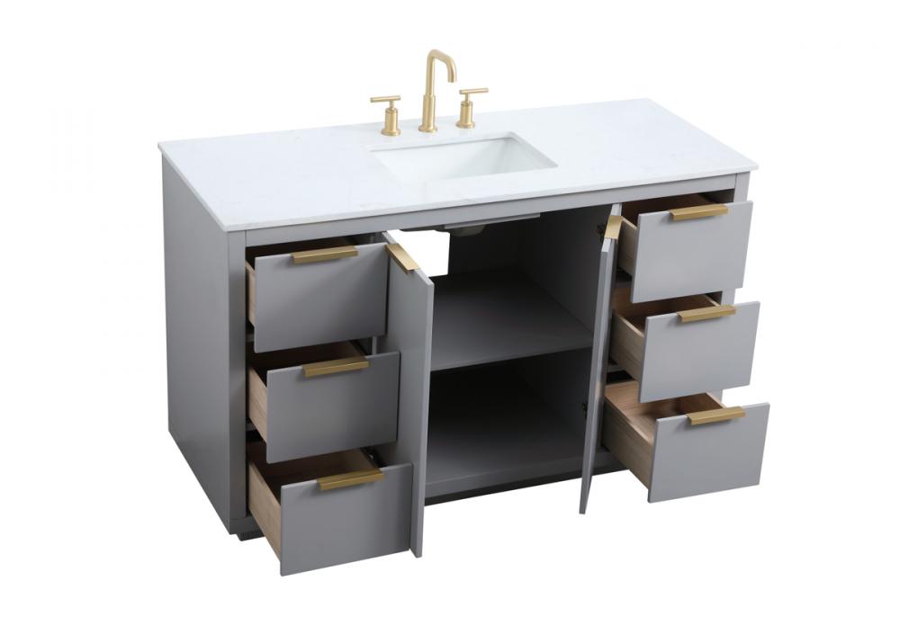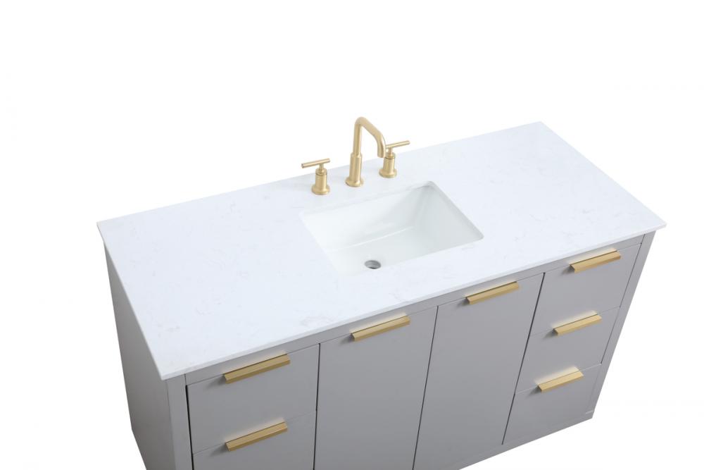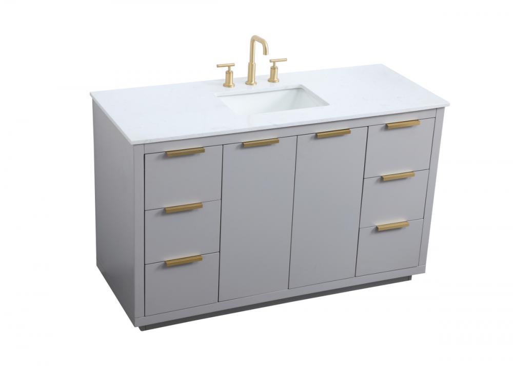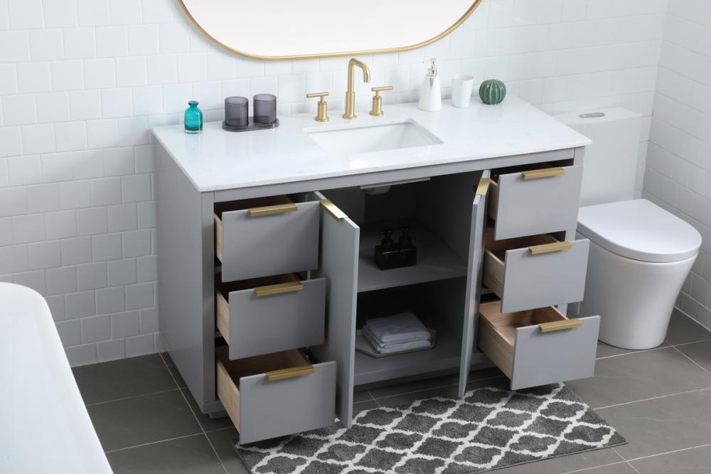 Upgrade your bathroom effortlessly with our stylish 54-inch vanity, showcasing an engineered marble top with a chic straight edge cut. The combination of six functional soft-close drawer and a convenient cabinet offers a perfect balance of design elegance and versatile storage. With an undermount porcelain sink, this vanity seamlessly blends timeless elegance with practical functionality. Adorned with sleek pulls, it adds a modern touch, enhancing the overall aesthetic. With three pre-drilled holes, it allows you to personalize your bathroom by choosing the perfect widespread faucet. Redefine your bathroom experience with this compact yet impactful vanity that optimizes space without compromising style.