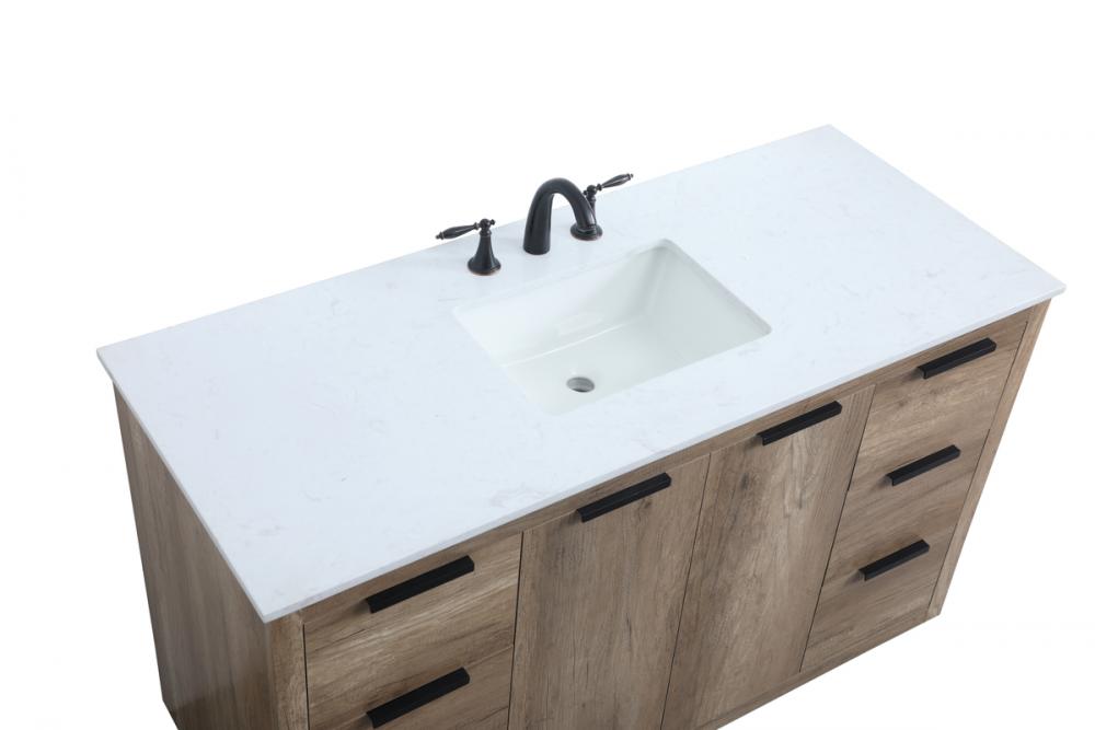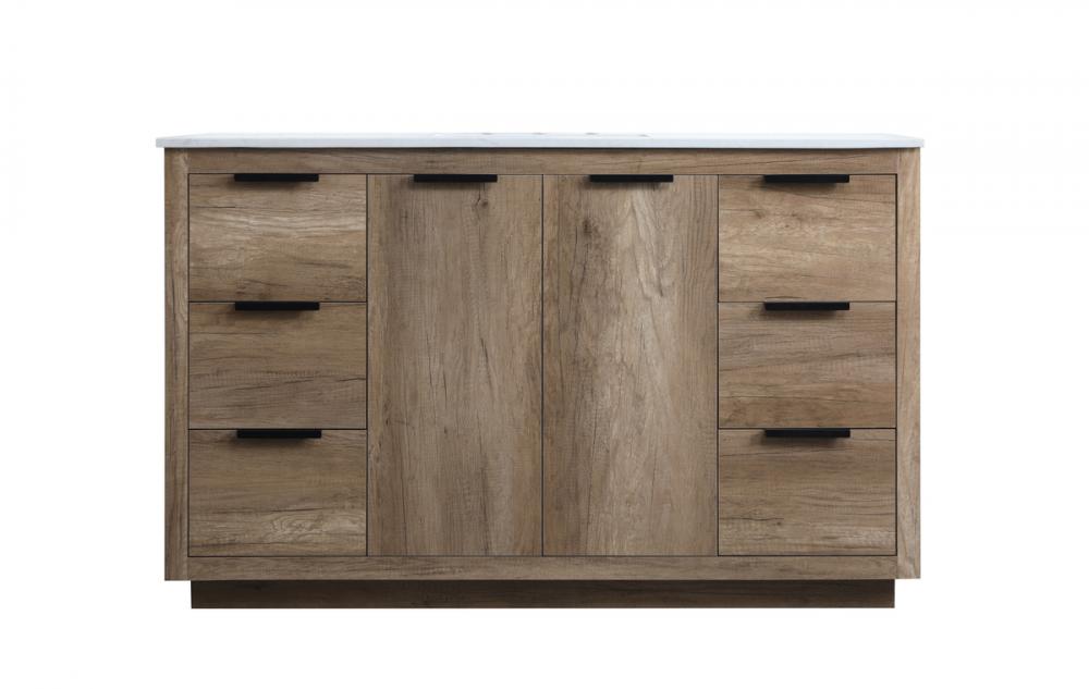 Upgrade your bathroom effortlessly with our stylish 54-inch vanity, showcasing an engineered marble top with a chic straight edge cut. The combination of six functional soft-close drawer and a convenient cabinet offers a perfect balance of design elegance and versatile storage. With an undermount porcelain sink, this vanity seamlessly blends timeless elegance with practical functionality. Adorned with sleek pulls, it adds a modern touch, enhancing the overall aesthetic. With three pre-drilled holes, it allows you to personalize your bathroom by choosing the perfect widespread faucet. Redefine your bathroom experience with this compact yet impactful vanity that optimizes space without compromising style.