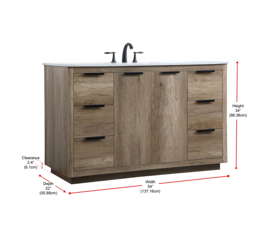 At 54 inches in length, our vanity provides a generous and sophisticated solution for your bathroom, ensuring ample space and an elegant design without sacrificing style or functionality.