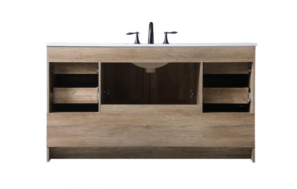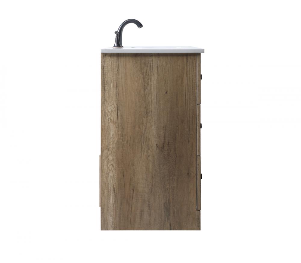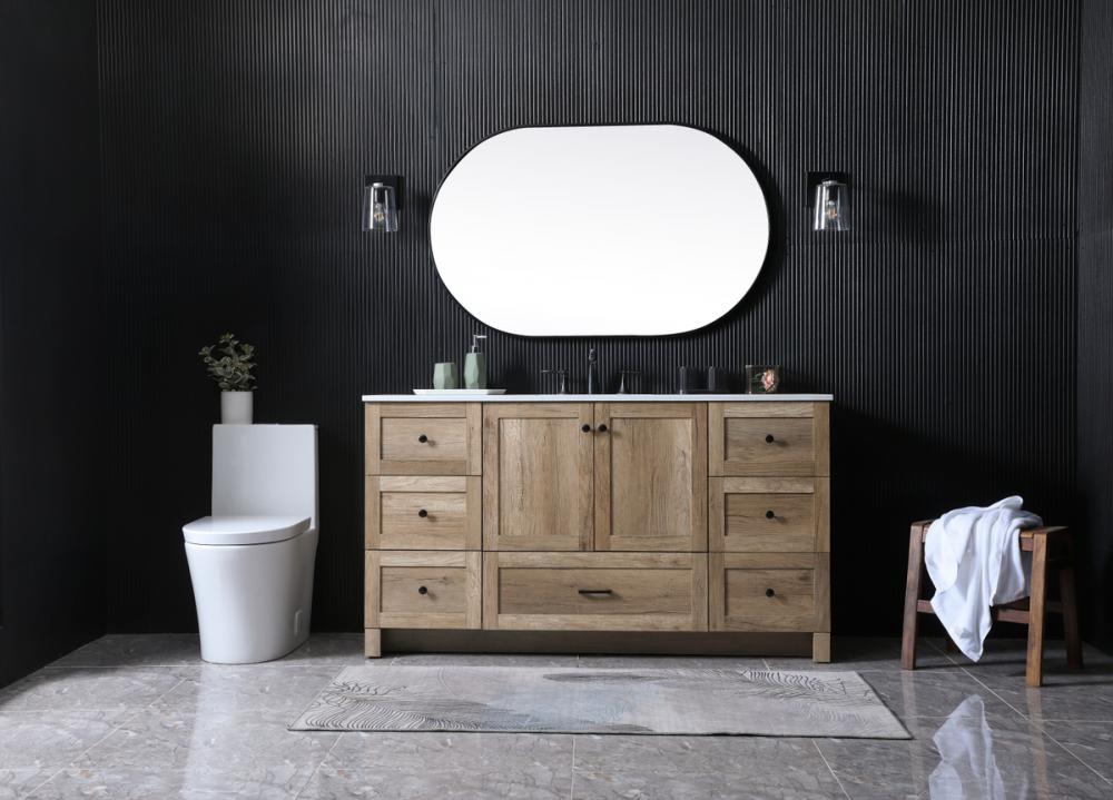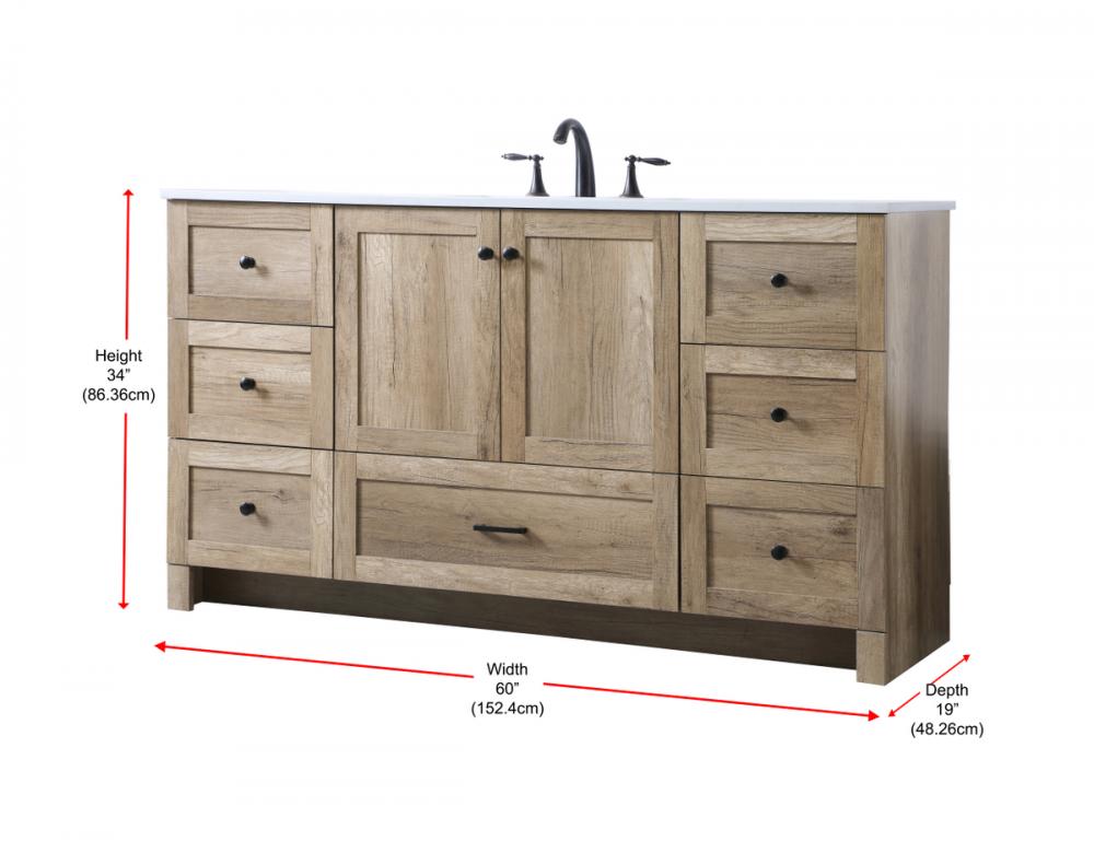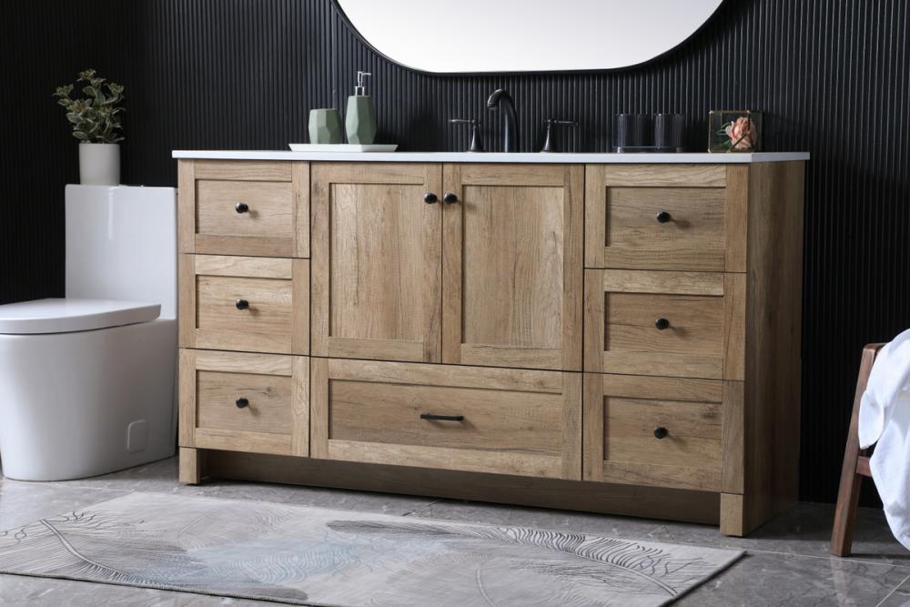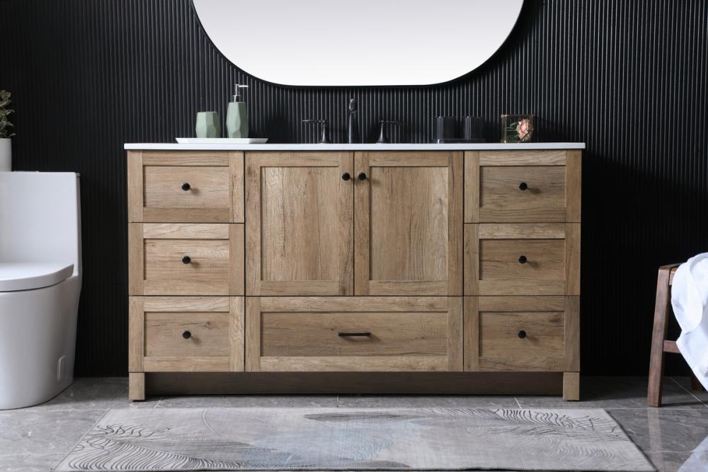 Revel in the beauty of a vanity that mimics the charm of real wood without the maintenance, boasting a faux wood look that adds a touch of natural warmth and rustic sophistication to your bathroom.