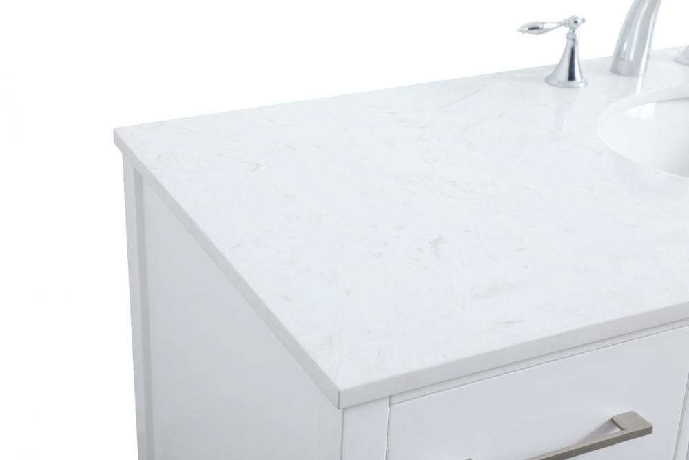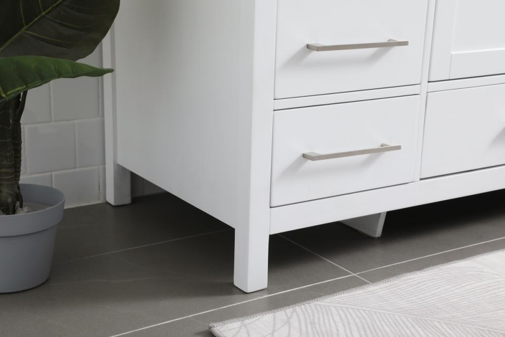 Never compromise beauty--the Irene collection stunning vanity will add lovely sophistication and complement any bathroom or powder room, while utilizing its charm and function to provide you with ample storage spaces. Brushed nickel pulls gently adorn the minimalist cabinet doors and drawers at the base, allowing for you to store away your bathroom essentials. The calacatta engineered marble countertop, porcelain undermount sink, dignified subtle engravings on the side edges, and squared legs all come together to create contemporary beauty. Work with your space, and design a beautiful room, no matter the size.