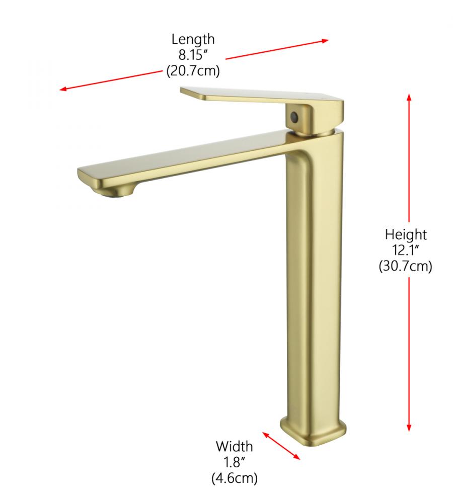 Vanity Faucet 1 13/16" × 1‘-0 1/16" × 8 3/16" brushed gold