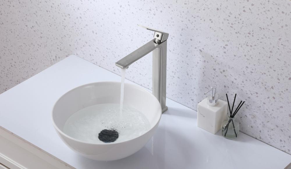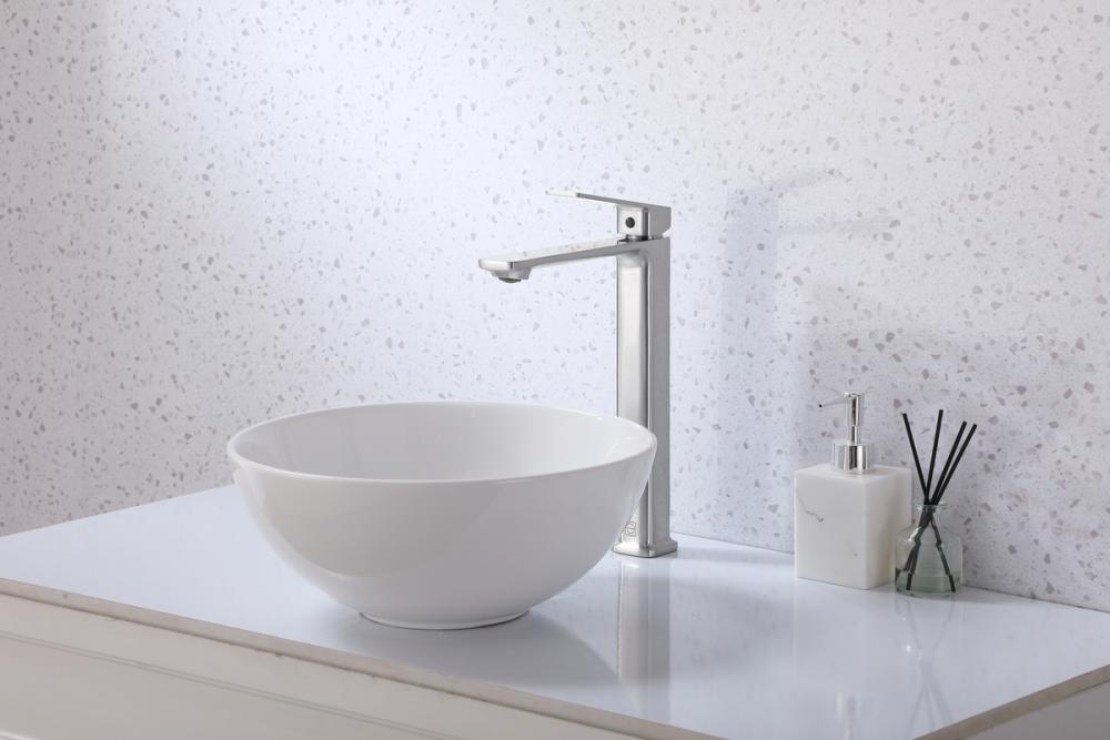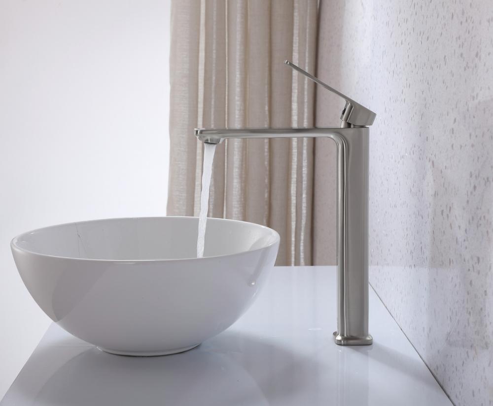 Its tall and elegant profile is the perfect choice for those looking to make a statement while maintaining a versatile and adaptable faucet that complements any decor.