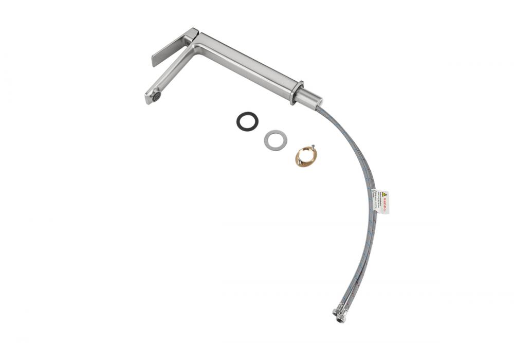 Our vanity faucet, featuring a single-handle design, ensures effortless water control for your convenience. Crafted from durable brass, this faucet not only resists corrosion but also brings a touch of contemporary sophistication to your vanity while promising long-lasting durability. With supply lines included, installation becomes a hassle-free endeavor, saving your valuable time. The handle's clear indicators for hot and cold temperatures make selecting your desired water temperature a simple and confident task. Standing tall, this compact faucet design is versatile and effortlessly complements various vanity styles. Its single-hole installation design ensures an easy setup without the need for complex installations or extra holes. Offering a maximum flow rate of 1.5 gallons per minute at 60 PSI, this faucet delivers a gentle yet efficient water flow, aiding in water conservation and reduced utility bills. Equipped with a single self-contained ceramic disc valve, this faucet ensures lasting reliability and precise volume and temperature control, ensuring a dependable performance for years to come.