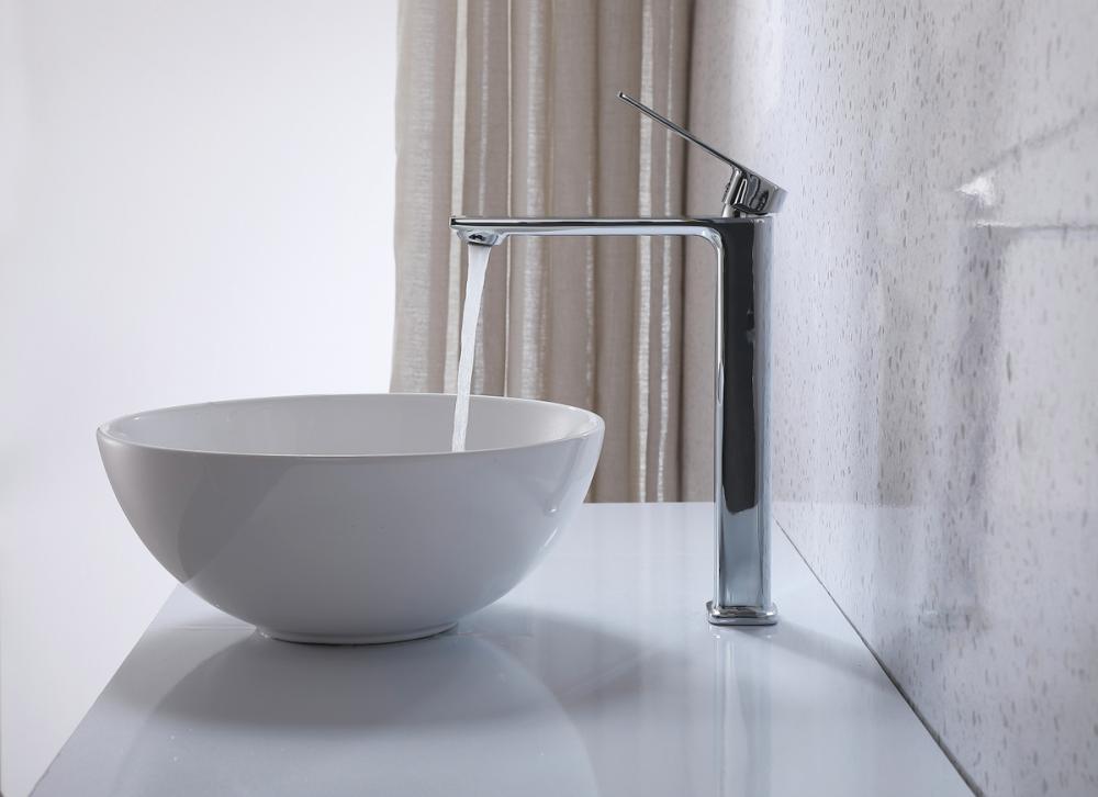 Its tall and elegant profile is the perfect choice for those looking to make a statement while maintaining a versatile and adaptable faucet that complements any decor.