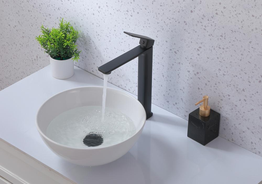Its tall and elegant profile is the perfect choice for those looking to make a statement while maintaining a versatile and adaptable faucet that complements any decor.