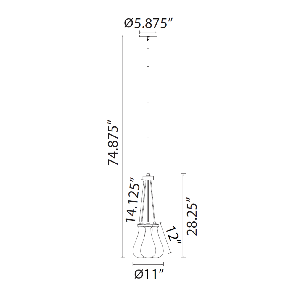 LED 3-light 11" cluster pendant light with solid heavy clear glass shaped as a rain drop. Refined metal details with our luxurious polished nickel finish. Adjustable arms for unique designs and integrated Replaceable LED with 3CCT 3000K, 3500K and 4000K.