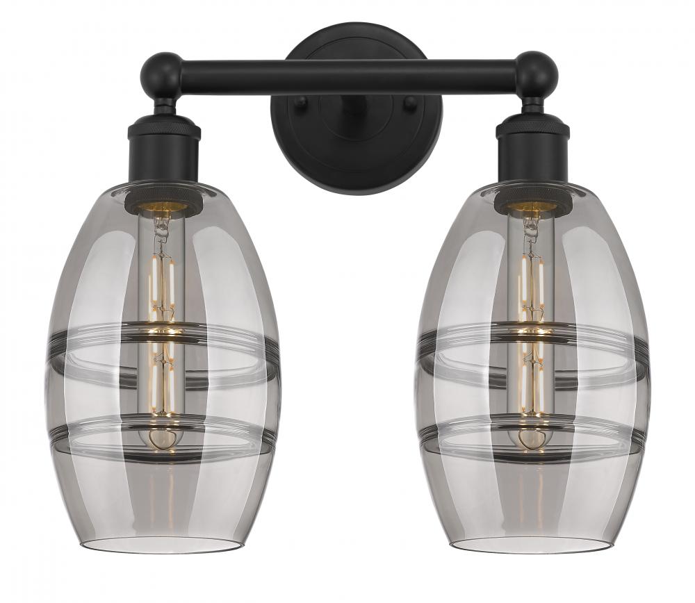 Vaz - 2 Light - 15 inch - Matte Black - Light Smoke Shade - Bath Vanity Light