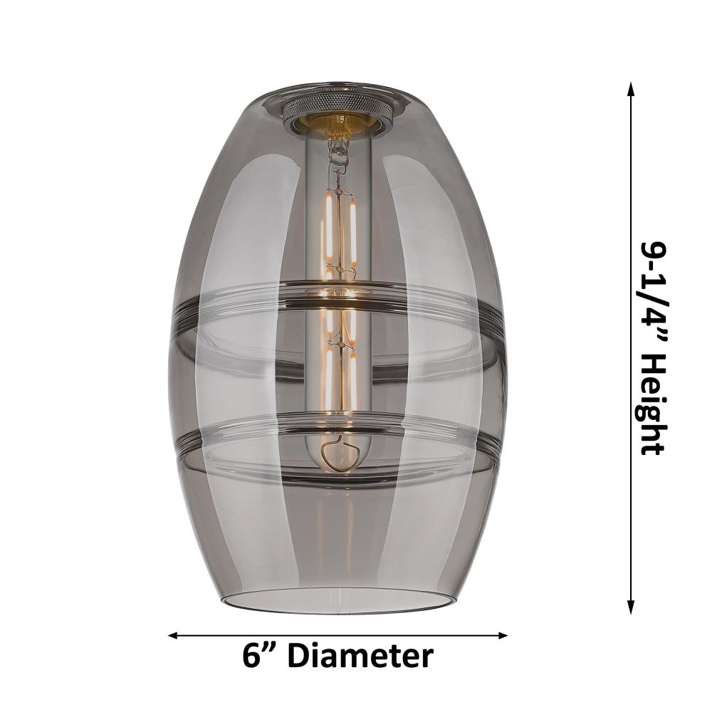 The Vas Series is meticulously handcrafted, showcasing exquisite glass band detailing. These bands are the result of a complex and delicate glassblowing technique, making each pendant truly one-of-a-kind. While the exterior of the glass shade has a sleek a