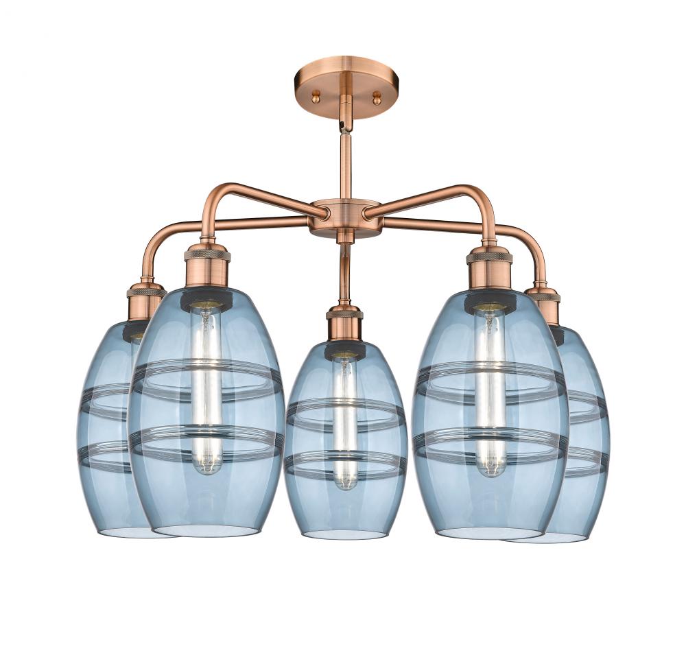 Vaz - 5 Light - 24 inch - Antique Copper - Blue Shade - Chandelier