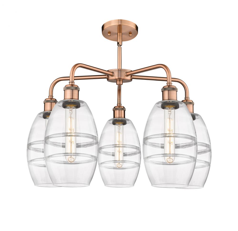 Vaz - 5 Light - 24 inch - Antique Copper - Clear Shade - Chandelier
