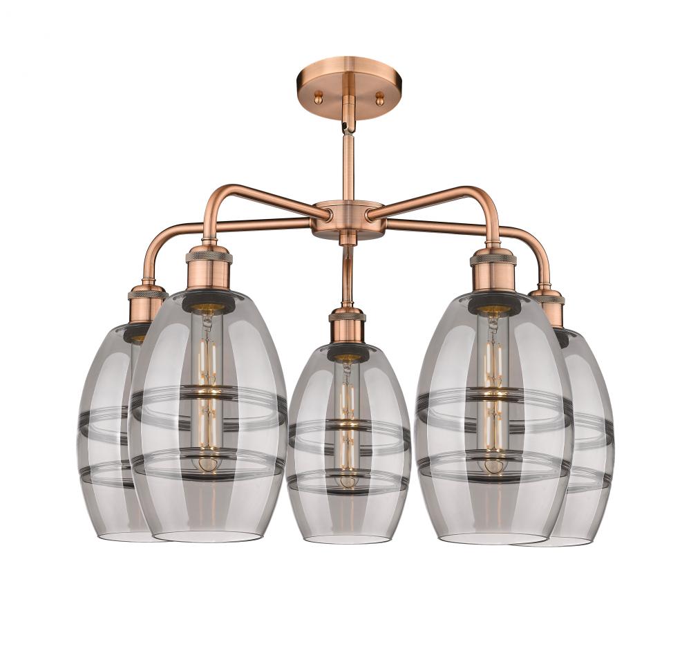 Vaz - 5 Light - 24 inch - Antique Copper - Light Smoke Shade - Chandelier