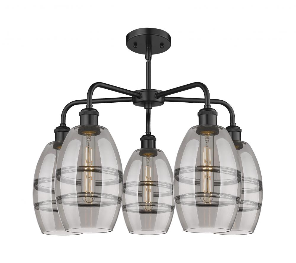Vaz - 5 Light - 24 inch - Matte Black - Light Smoke Shade - Chandelier