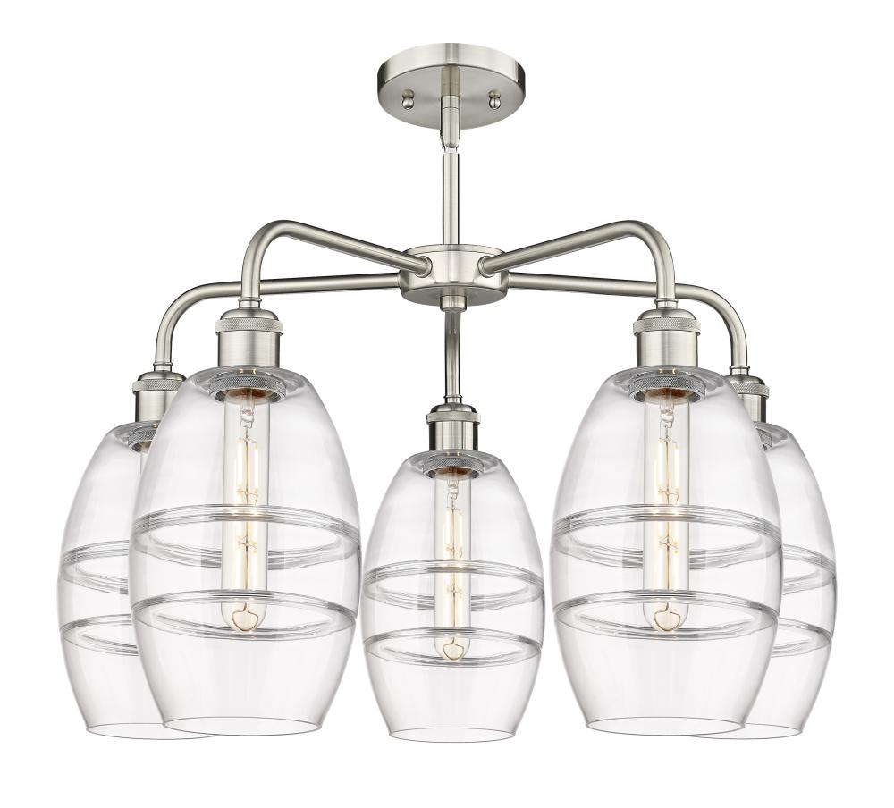 Vaz - 5 Light - 24 inch - Satin Nickel - Clear Shade - Chandelier
