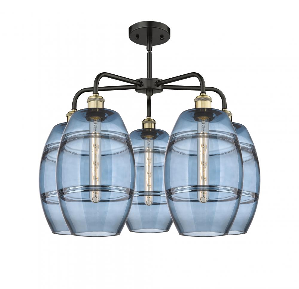 Vaz - 5 Light - 26 inch - Black Antique Brass - Blue Shade - Chandelier