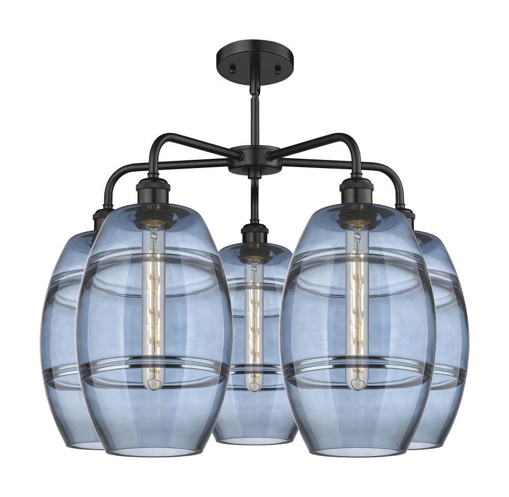 Vaz - 5 Light - 26 inch - Matte Black - Blue Shade - Chandelier