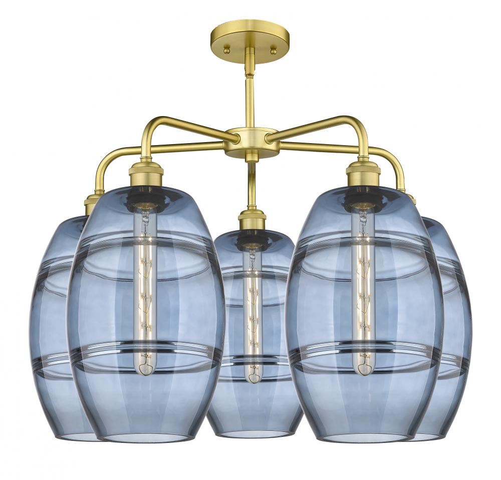 Vaz - 5 Light - 26 inch - Satin Gold - Blue Shade - Chandelier