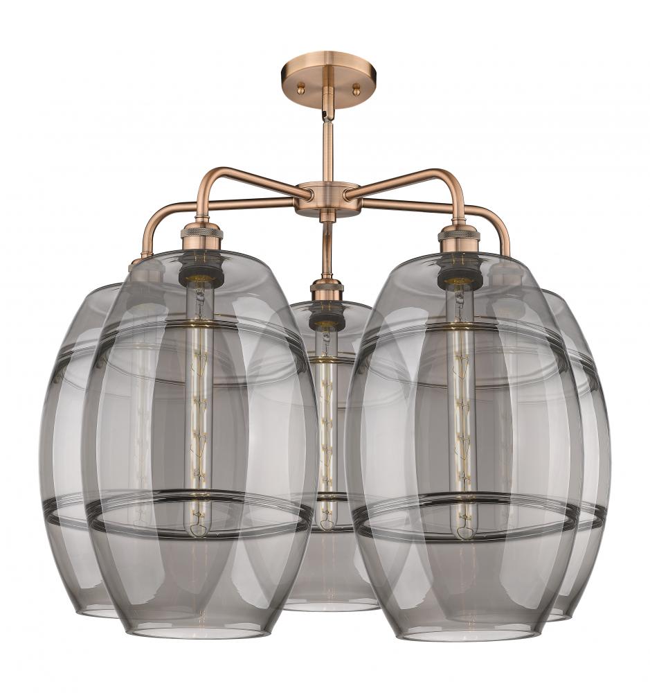 The Vas Series is meticulously handcrafted, showcasing exquisite glass band detailing. These bands are the result of a complex and delicate glassblowing technique, making each pendant truly one-of-a-kind. While the exterior of the glass shade has a sleek a