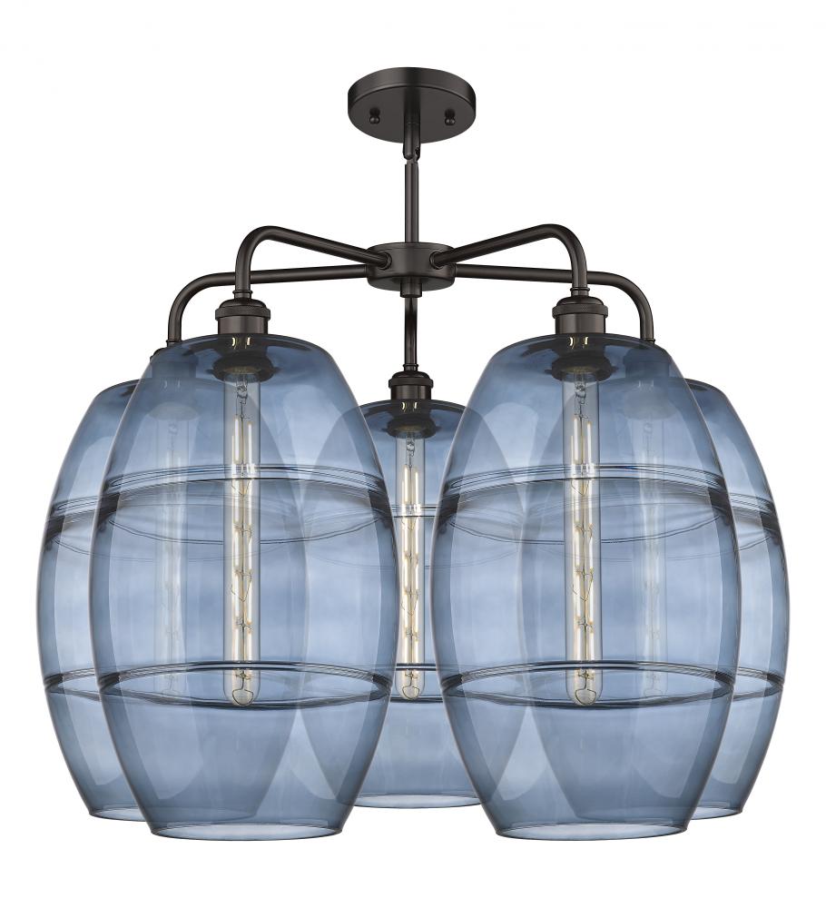 Vaz - 5 Light - 28 inch - Oil Rubbed Bronze - Blue Shade - Chandelier