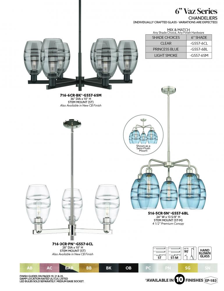 Vaz - 6 Light - 36 inch - Matte Black - Stem hung - Chandelier