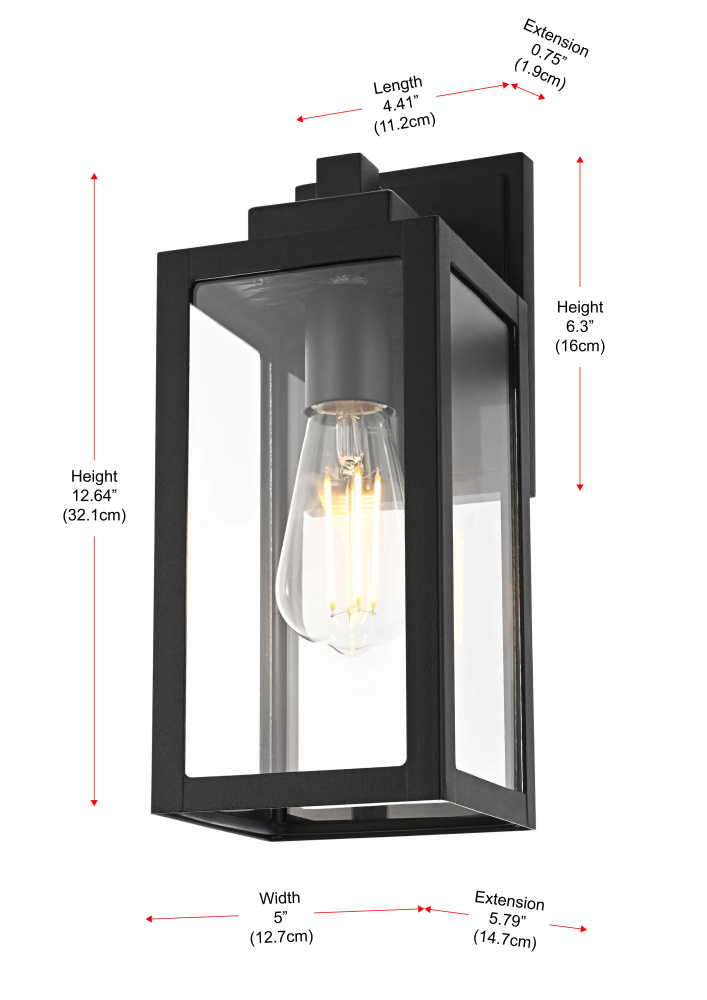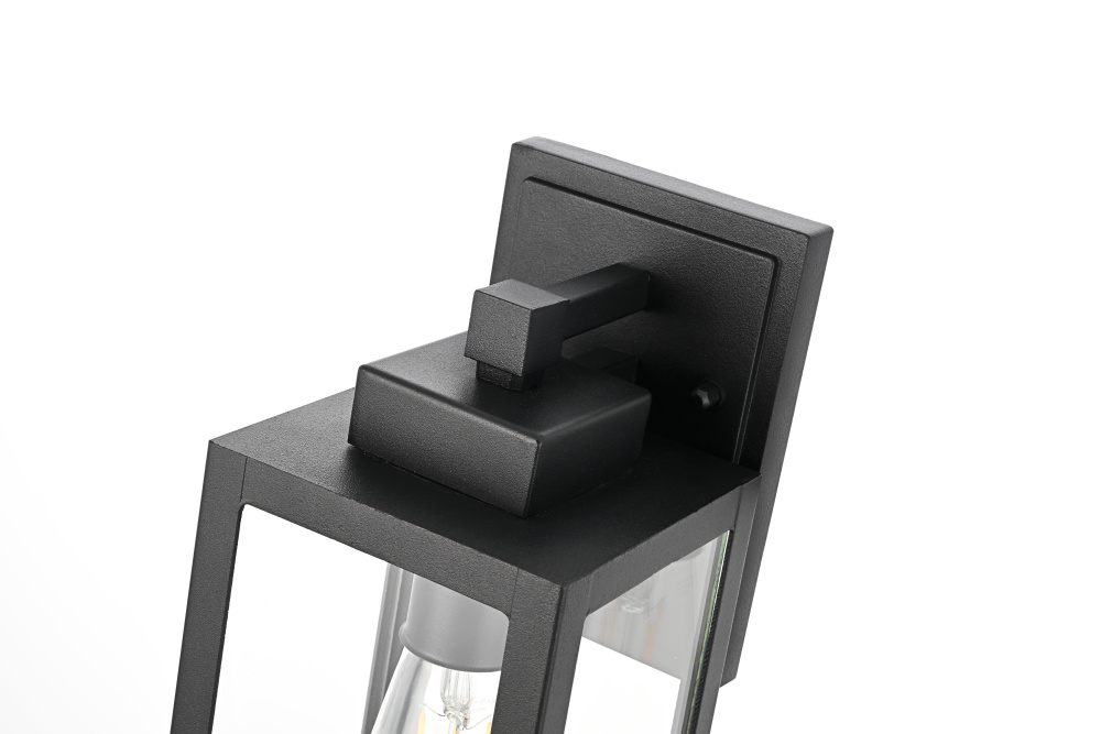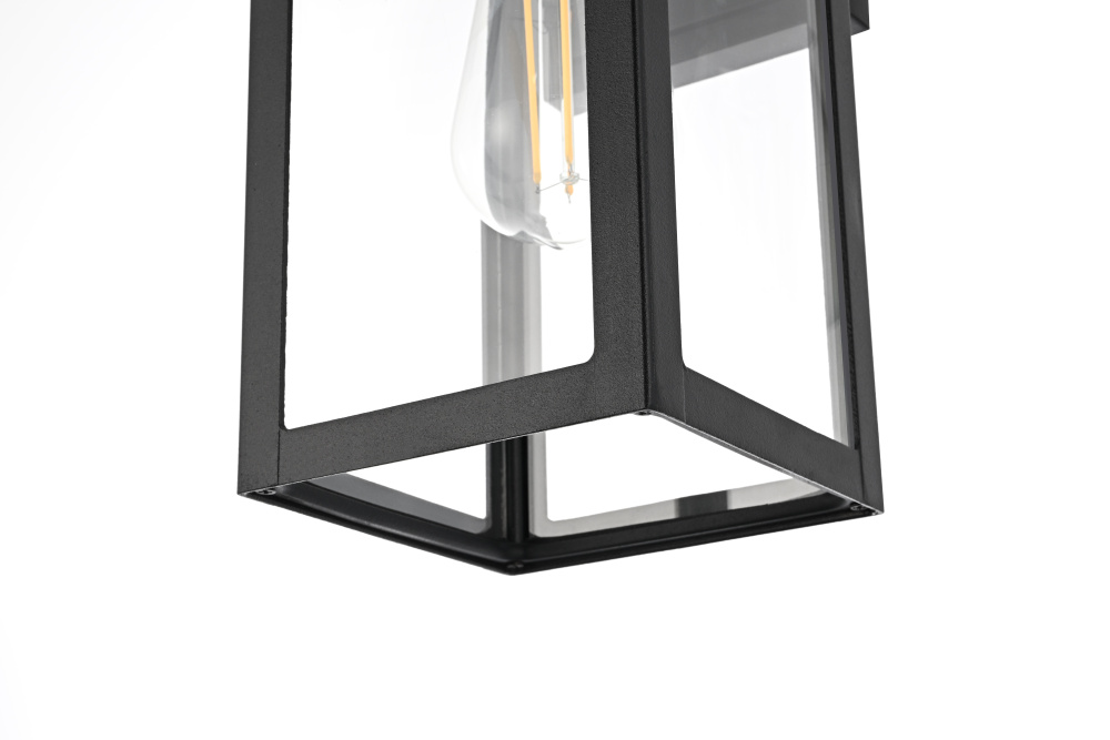 This wall light combines modern geometry with functional outdoor lighting, featuring a rectangular metal frame and clear glass panels that create a sleek, defined appearance. The black-finished iron and aluminum construction ensures durability. The clear glass panels maximize illumination, making this fixture both practical and visually striking. The open-bottom design allows for quick and hassle-free bulb changes, while the fixture supports a single medium-base E26 bulb (40W max, not included). ETL Wet Rated for outdoor durability, this structured and modern post light is a strong addition to driveways, pathways, and garden landscapes. Built with marine-grade, corrosion-resistant aluminum, this sconce withstands coastal conditions for long-lasting durability.