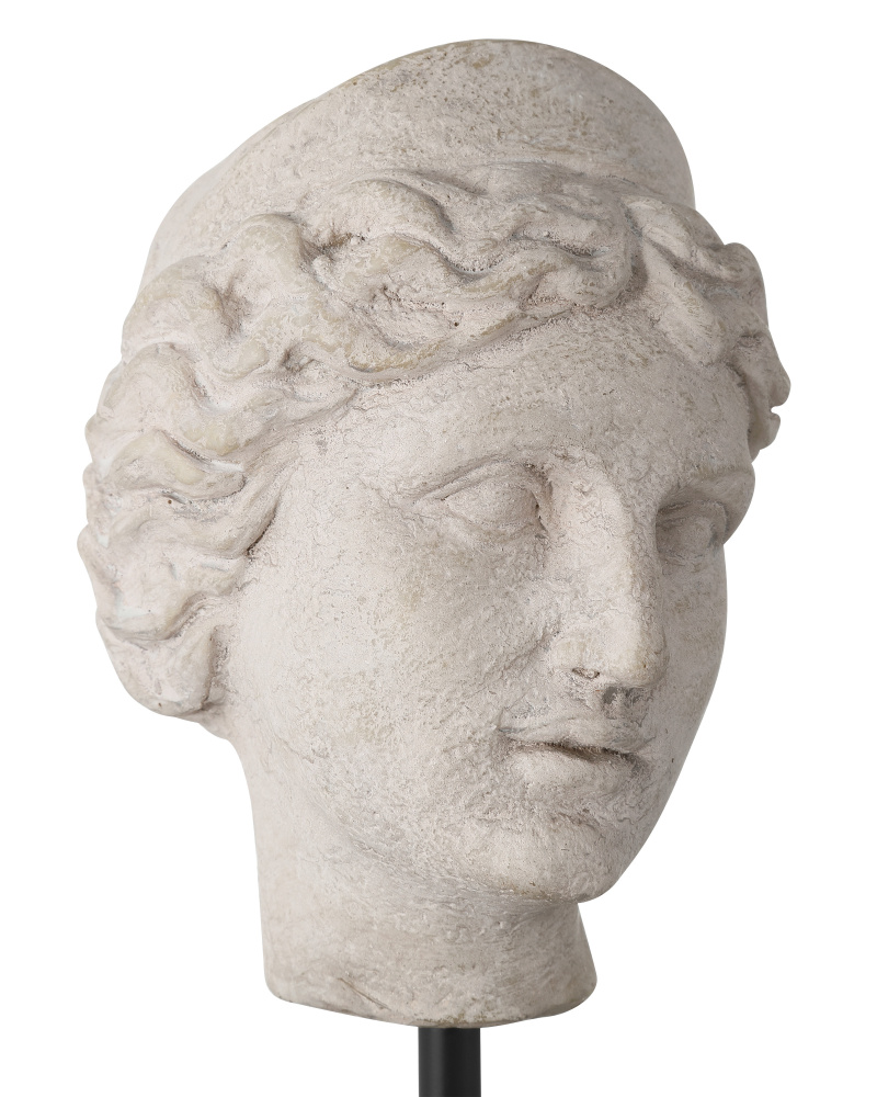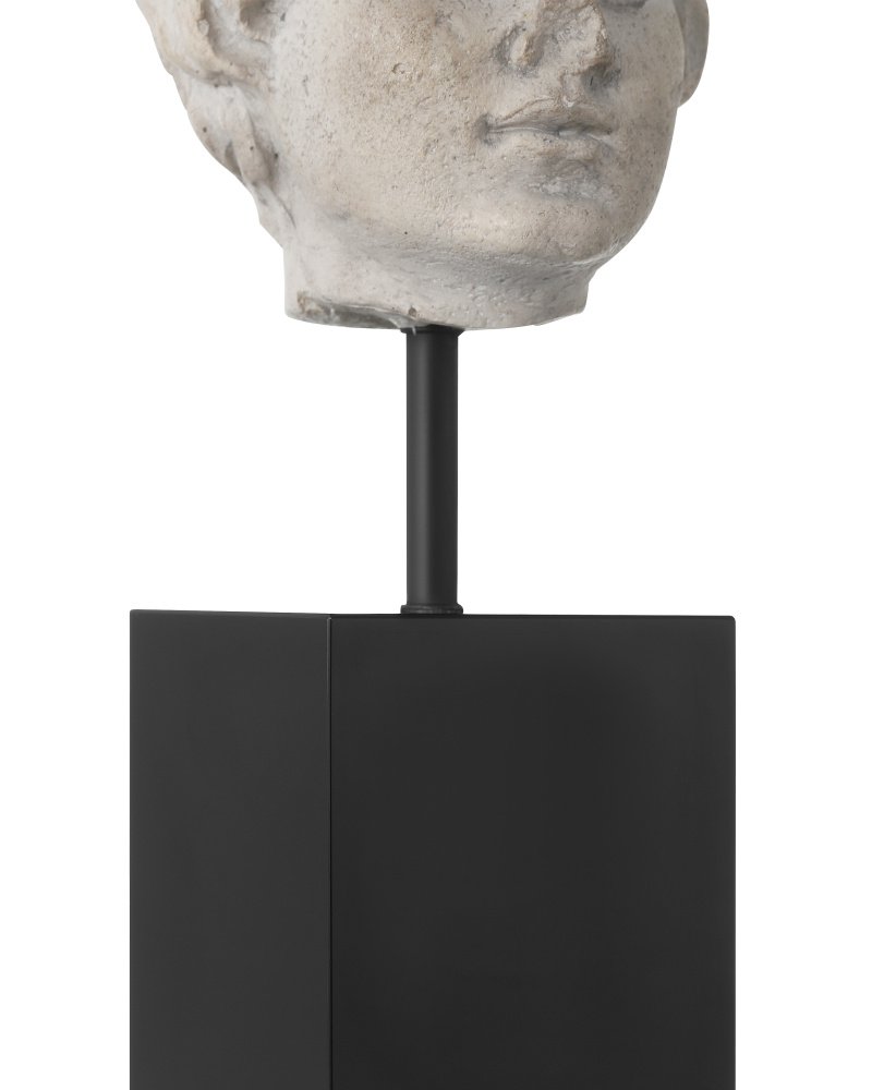 The Venus Head on Stand Set is two sculptures that look as if they were carved from stone ions ago, though they are actually made of composite in an artisanal mix of beige and pale gray finishes. Mounted on blocks of black optic crystal in varying heights, these sculptures look like museum-quality artifacts.