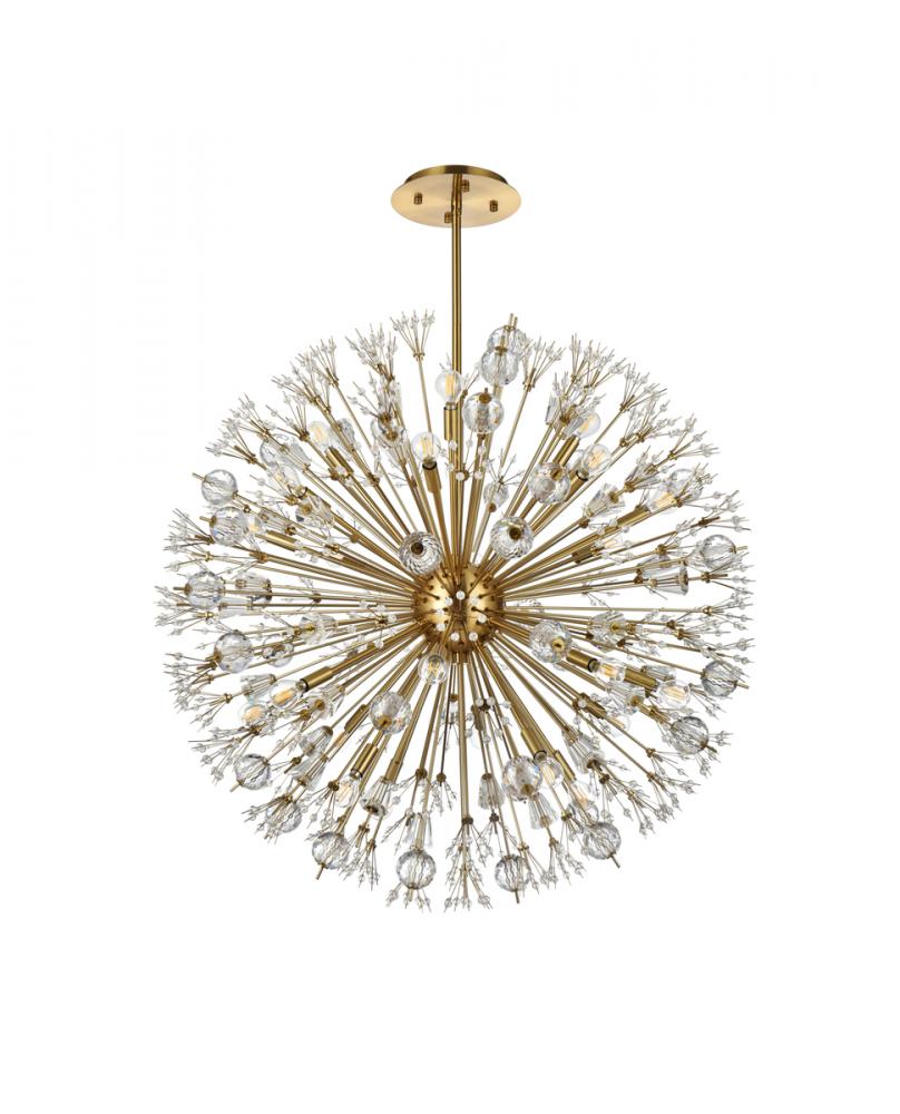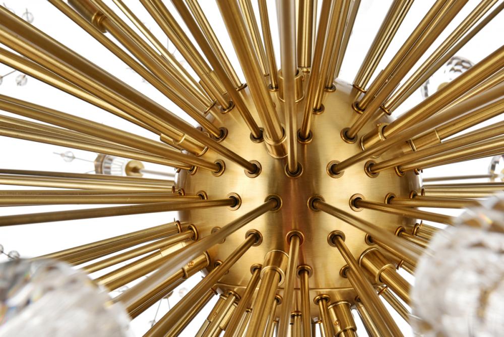 Vera 38 inch crystal starburst round pendant in gold