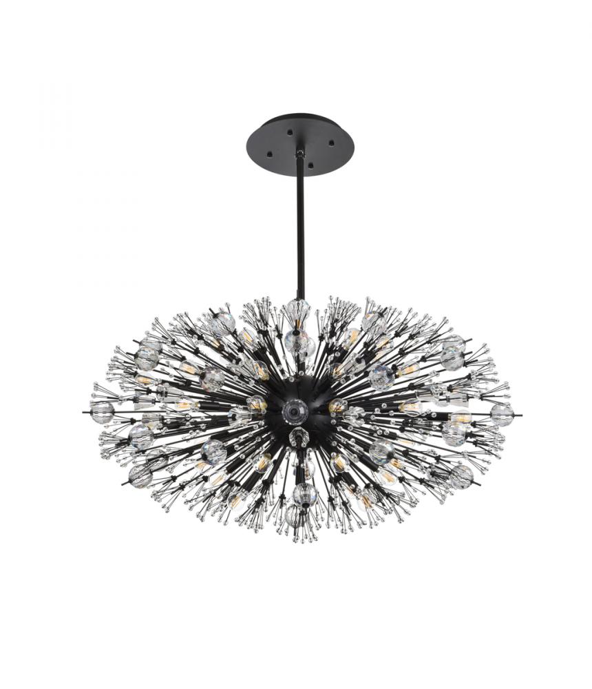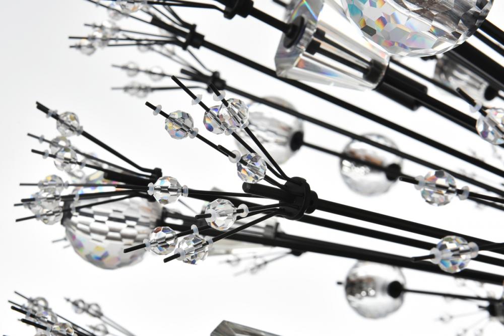 Like an explosion frozen in time, Vera collection hanging fixtures are suspended chaos. Clear large crystal balls and sprays of smaller crystals swirl amidst exposed candelabra bulbs (not included) balanced on dainty wires. A gleaming steel sphere forms the epicenter of the storm. A touch of savage beauty that easily compliments a kitchen, entryway, or bedroom. Sloped ceiling adaptable with a durable swivel could be mounted on vaulted or angled ceilings
